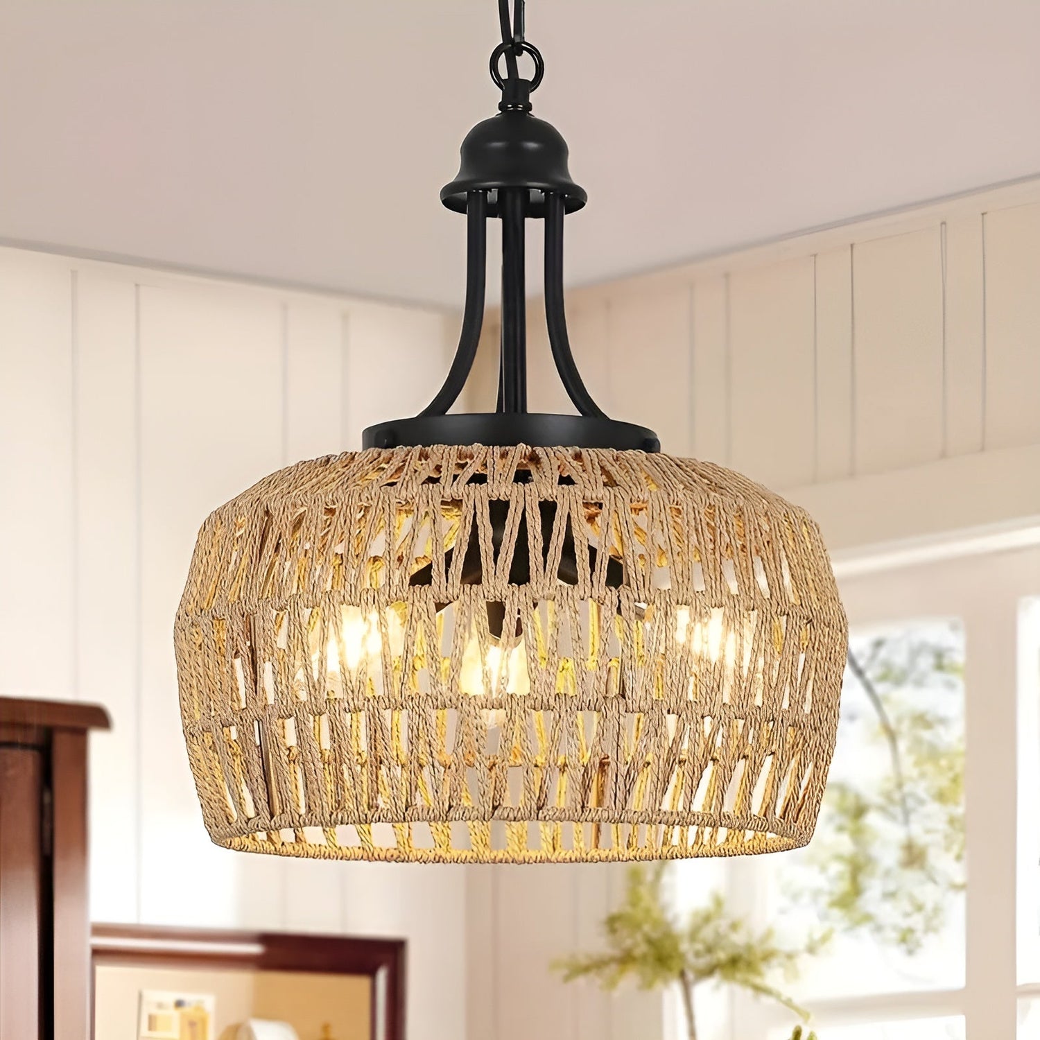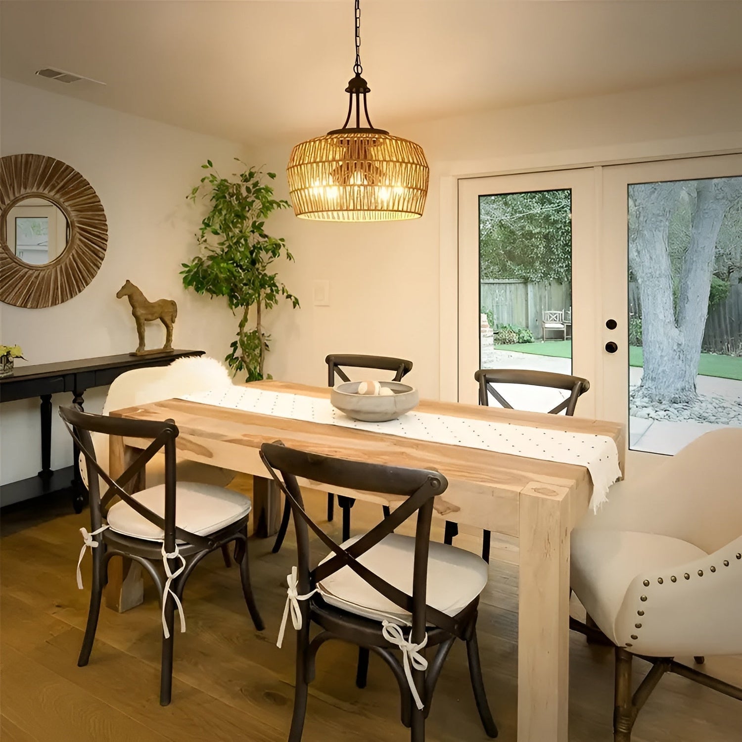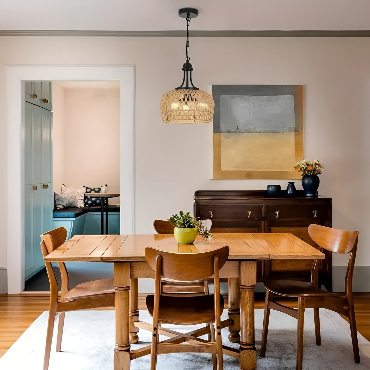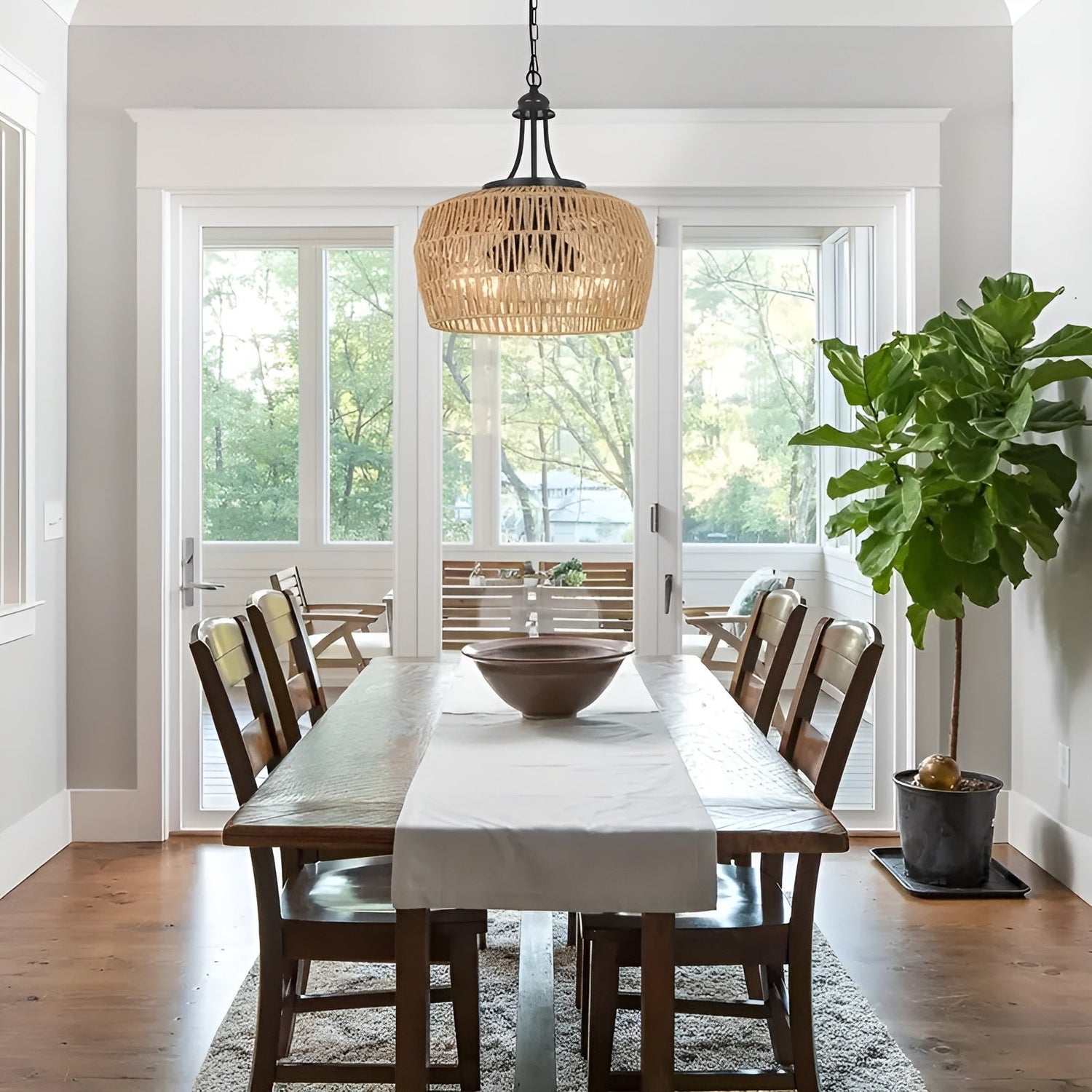 Boho-hänglampa med rottingskärm – Naturlig pendellampa för matrum och kök