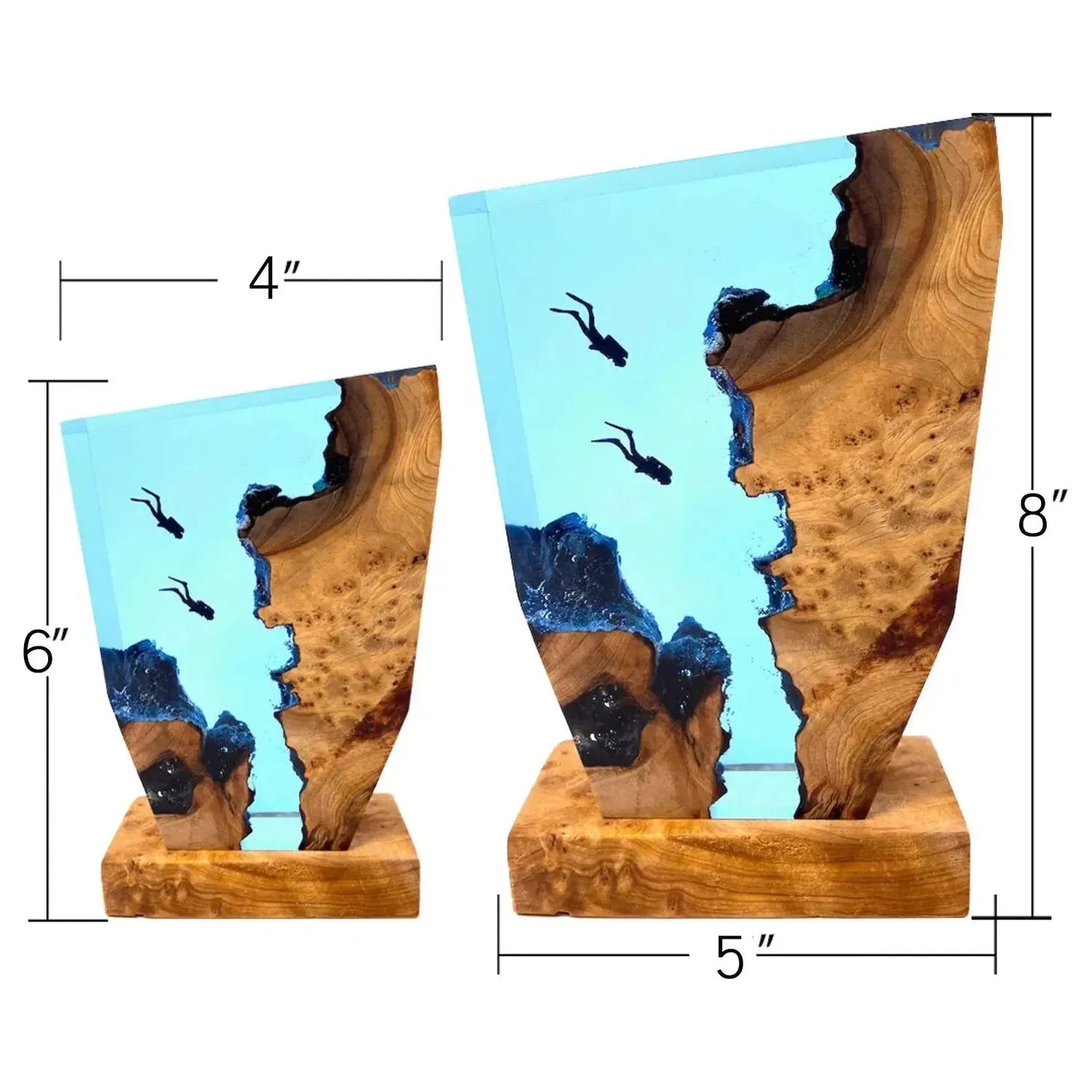 Tänk om du kunde ta den fascinerande undervattensvärlden direkt till ditt vardagsrum? Med bordslampan med dykhål kan du göra just det! Denna resin bordslampa tar havets skönhet och lugn in i varje rum och skapar en lugnande atmosfär med sin unika epoxihartsdesign.