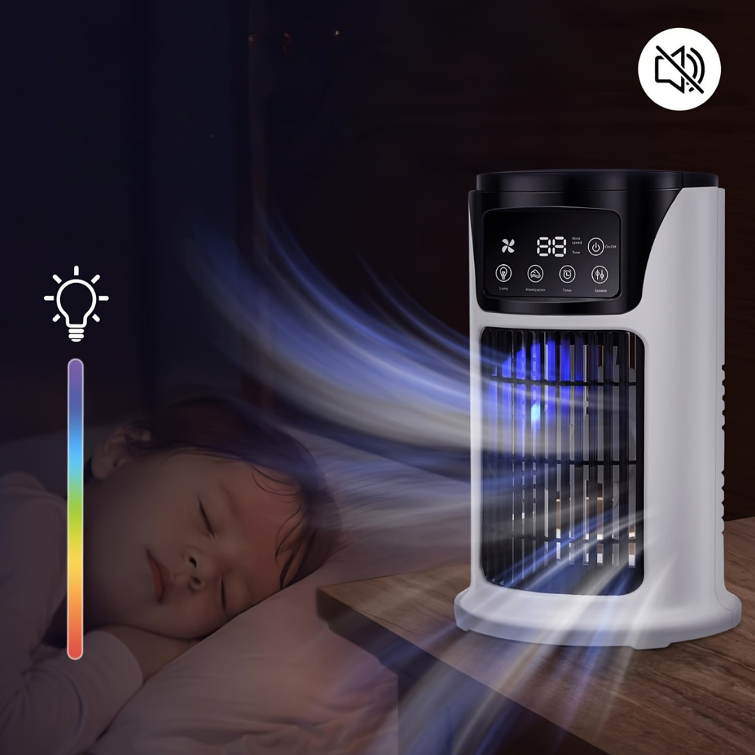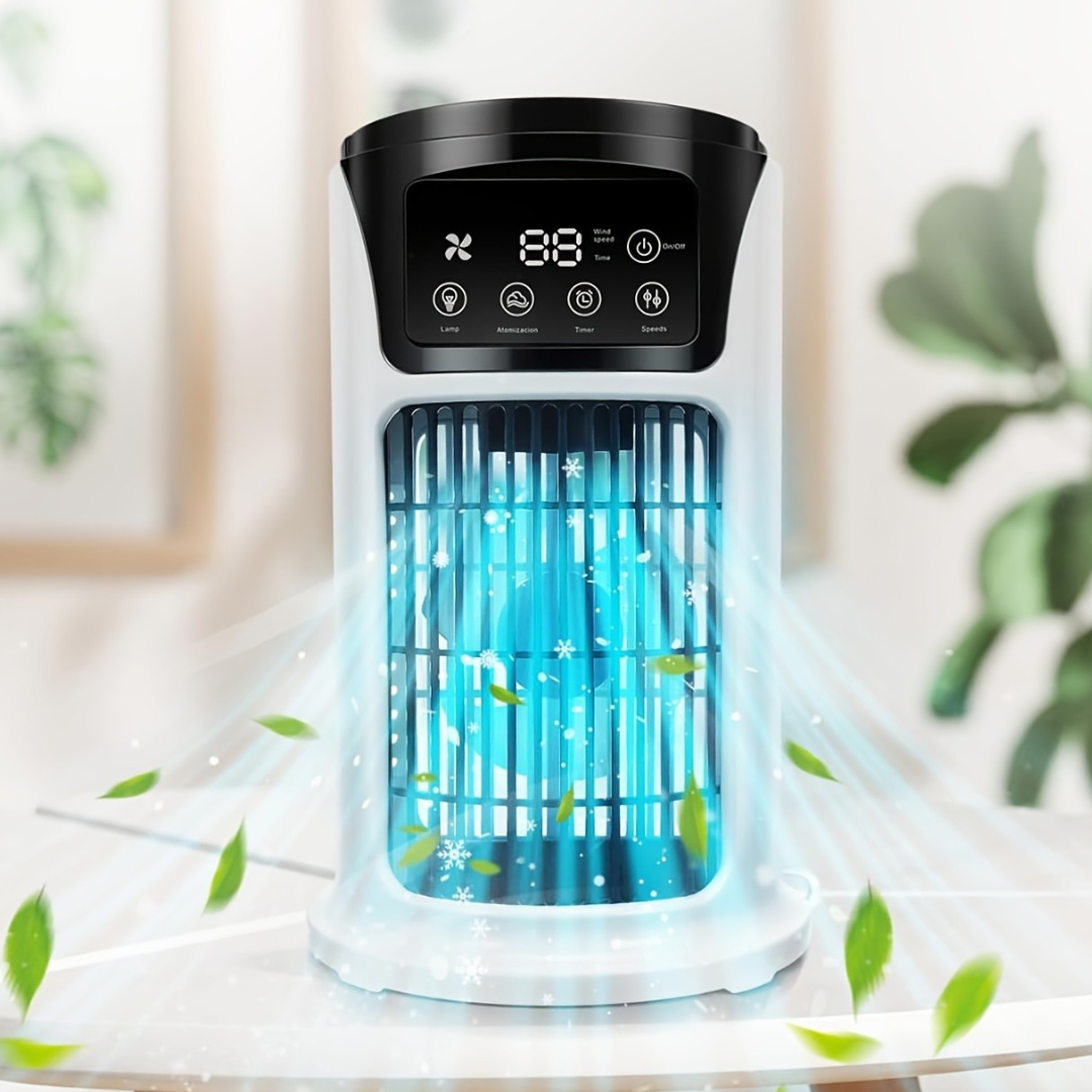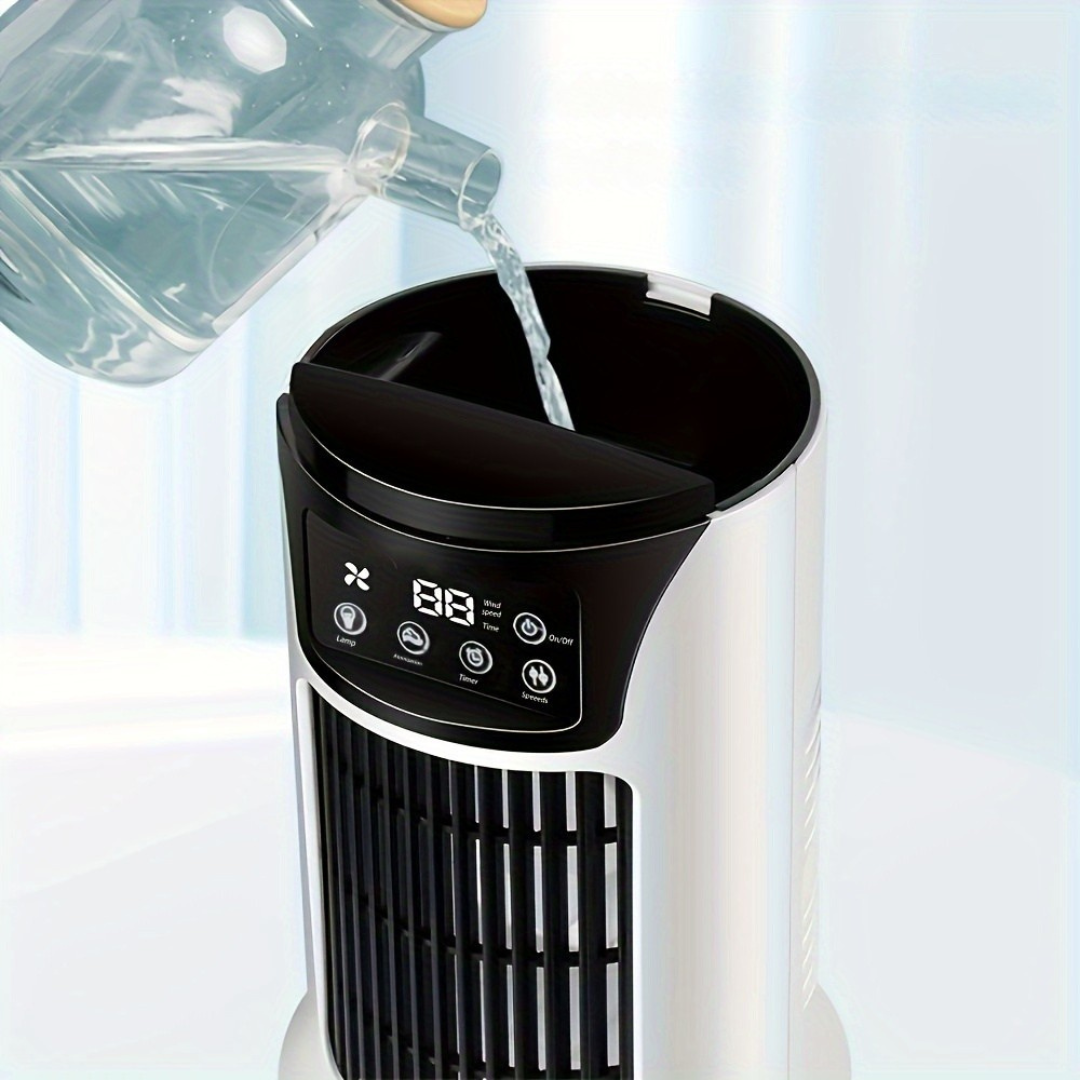 Slå hettan med denna bärbara luftkylare och fläkt, designad för att hålla ditt rum bekvämt och fräscht. Denna USB-drivna enhet kombinerar kylning och fuktgivning för att ge omedelbar lättnad på varma dagar. Tillverkad av hållbar plast, är den lätt och perfekt för hemmet, kontoret eller sovrummet.