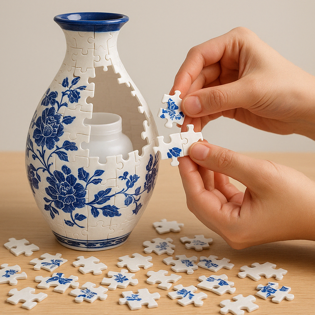 𧩠Bygg sjÀlv: SÀtt ihop din egen vas med pusselbitar.