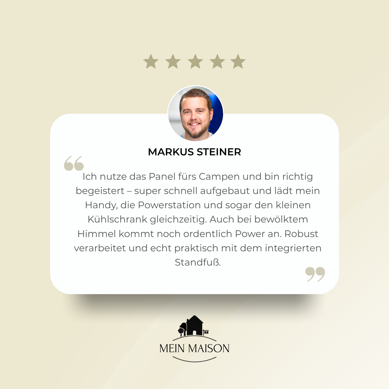 Solpanelen är vikbar, vattenavvisande tack vare polyesterduk, extremt hållbar (över 50 000 vikcykler) och temperaturbeständig – idealisk för alla användningsområden.