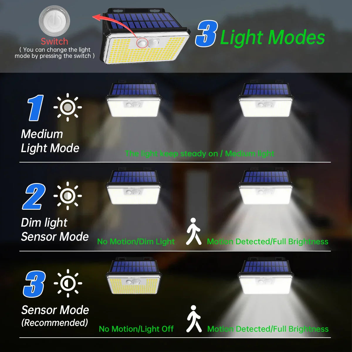 Carvallo 197 Solar Vägglampor Set | 2 stycken | 197 LEDs | 3 lägen | IP65 Vattentålig | Rörelsesensor | Utomhusbelysning för Trädgård, Gård & Terrass