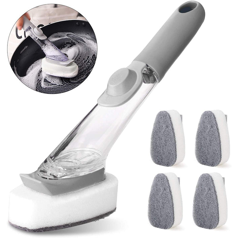 Carvallo 2-i-1 Diskborste med tvålpump & utbytbara huvuden | Långt handtag & skrapa | För kastruller, stekpannor & tallrikar