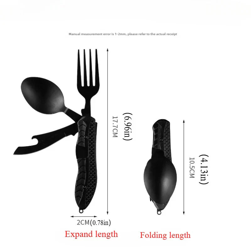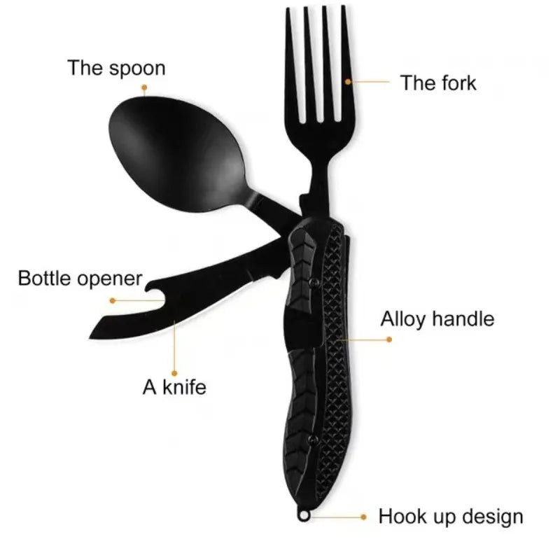 🍴 Multifunktionell & genomtänkt: Innehåller allt du behöver för att äta – kniv, gaffel och sked, säkert kombinerat i en kompakt hopfällbar design.