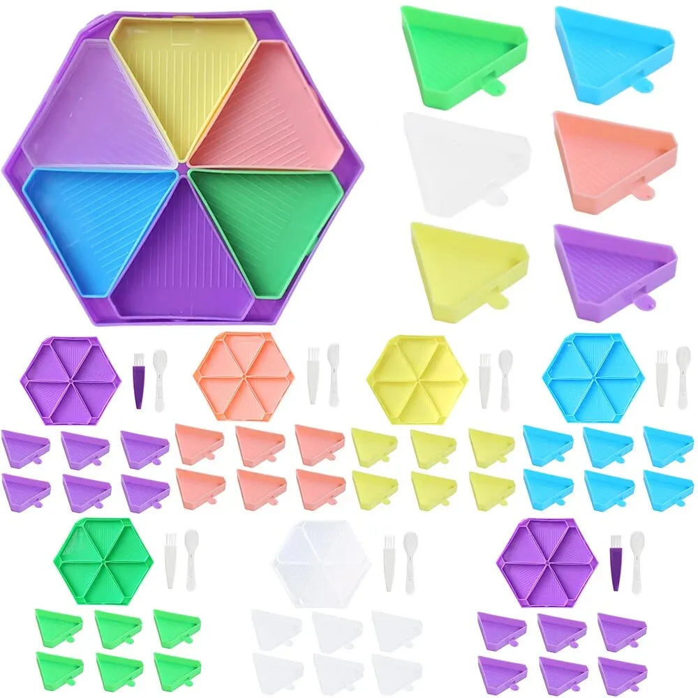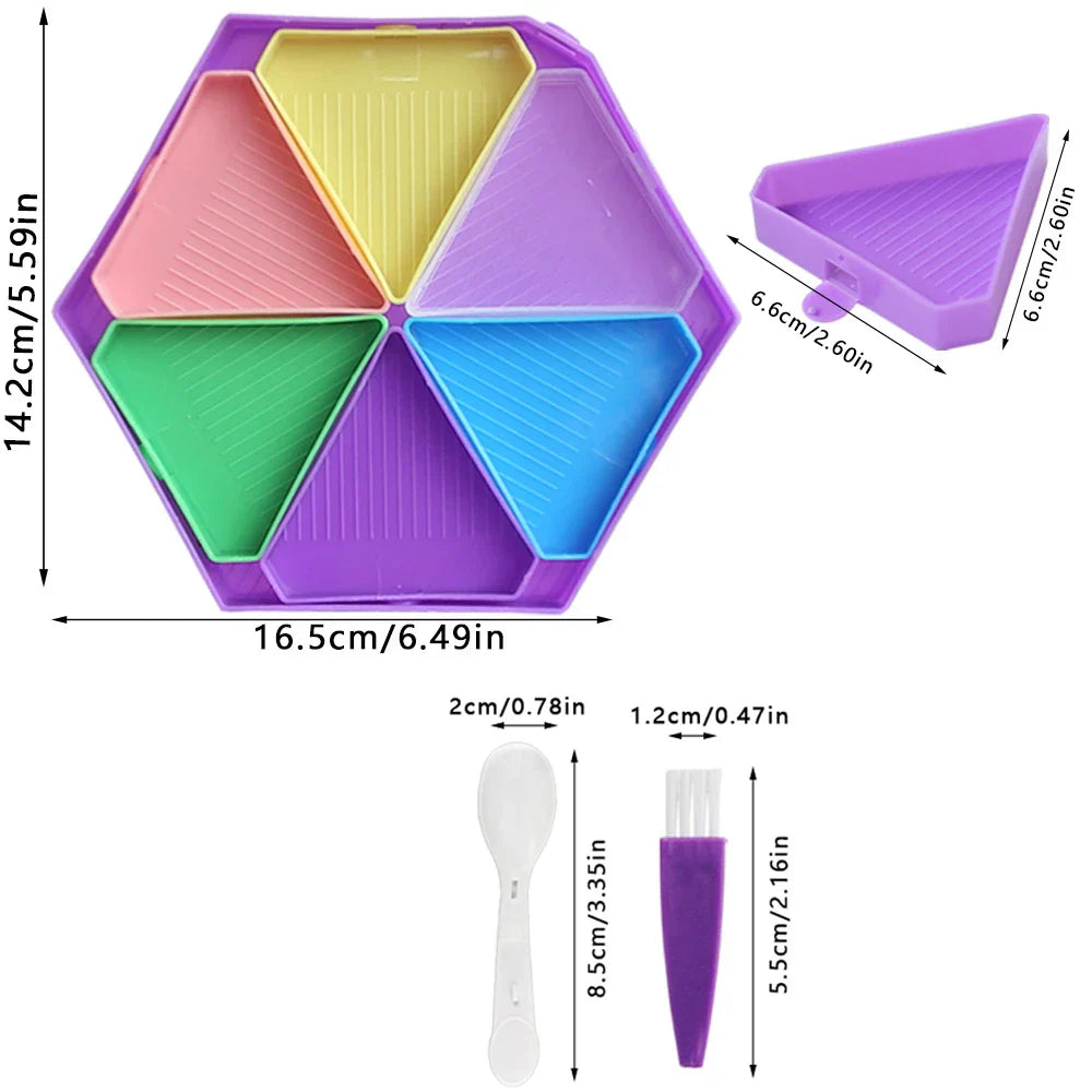 Carvallo 6-Fack Palettset | Sexkantig Diamond Painting-skål | Organizer för stenar & pärlor | Inklusive sked & borste