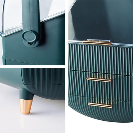✔️ Allt prydligt förvarat: Kosmetik, vård & verktyg på en plats – dammskyddat och överskådligt.