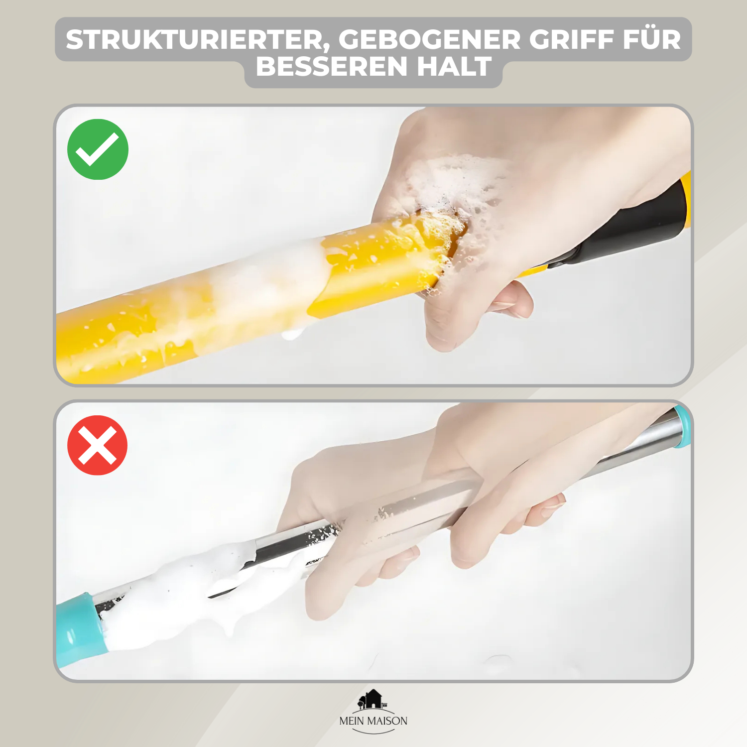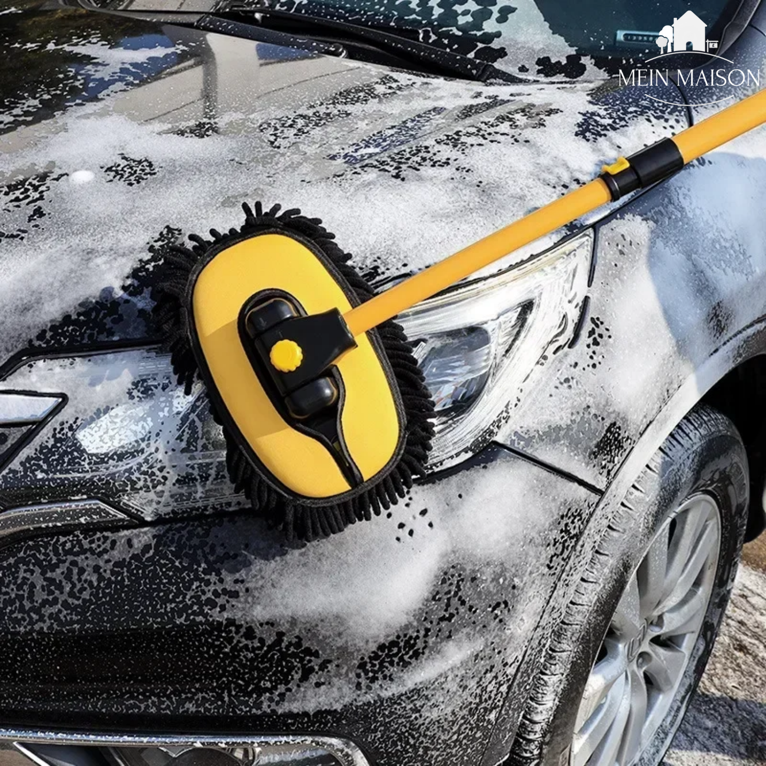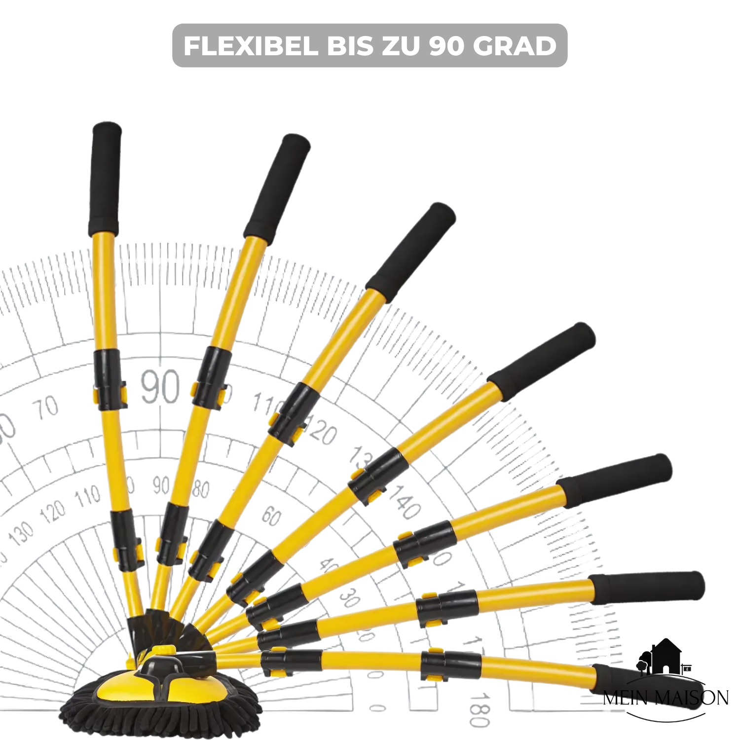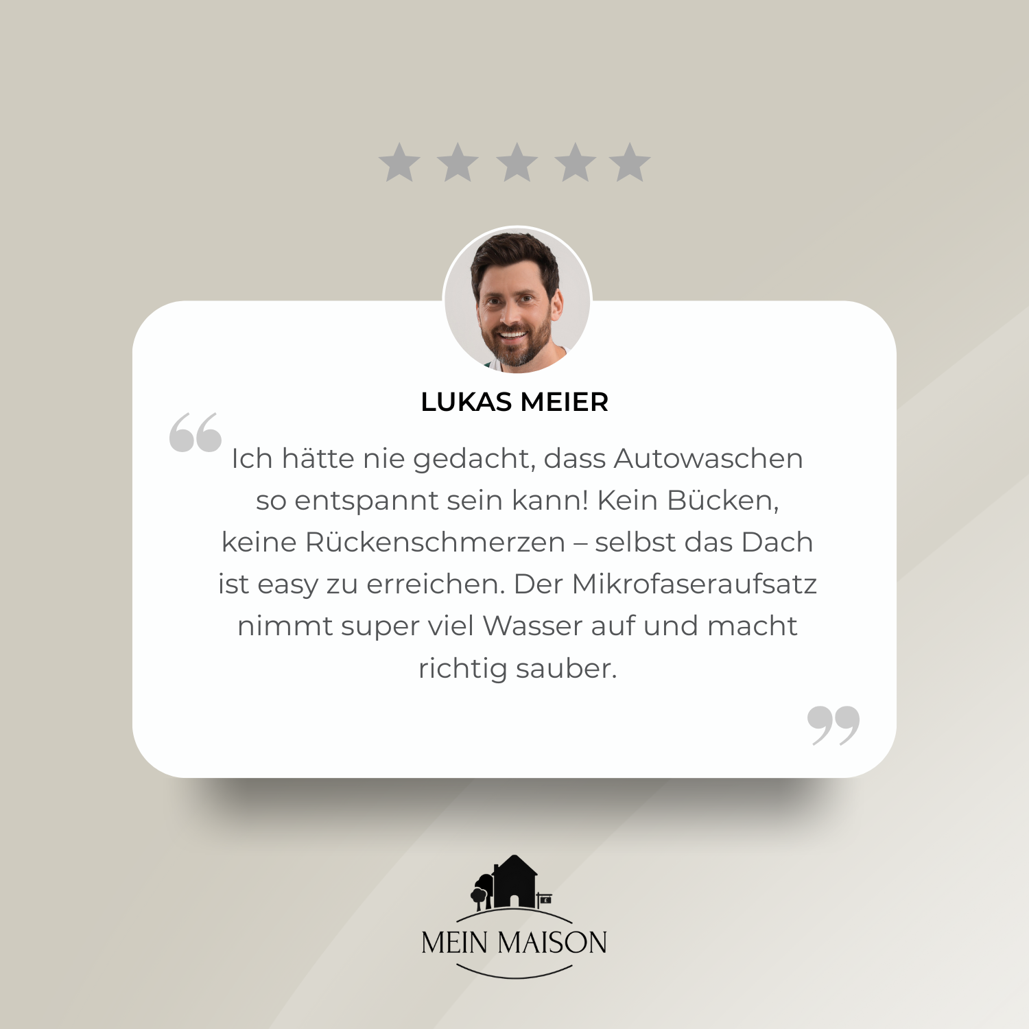 ✔️ Teleskopskaft över 1 m – Ryggen förblir rak: Rengör höga ytor som bilens tak & vindruta utan att klättra eller vrida dig.