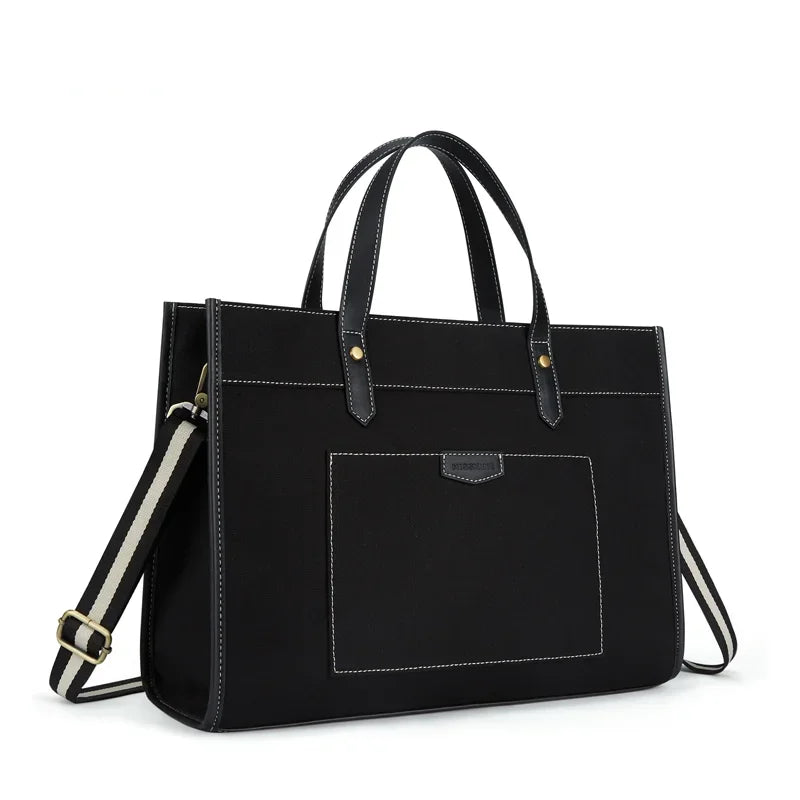 Carvallo Canvas Laptop-väska Dam 15,6 tum | Stor axelväska med fack för kontor, universitet och resor | Stilig handväska med axelremmar och laptopfack