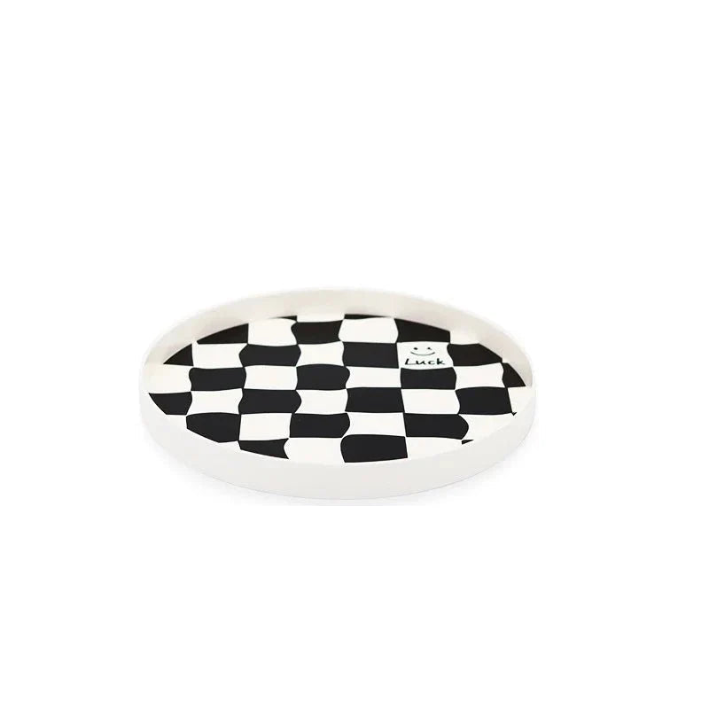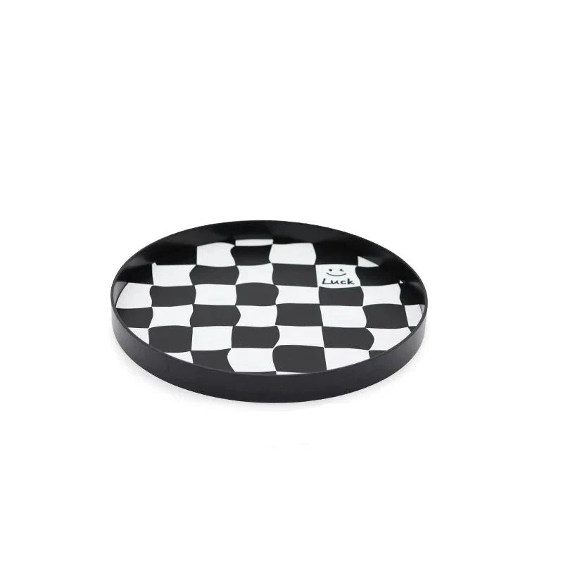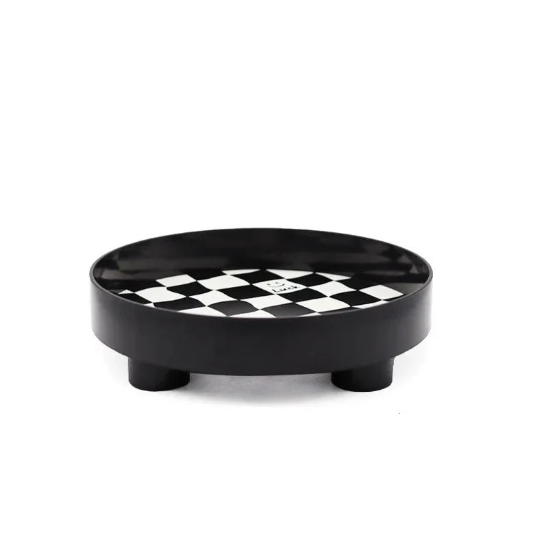 TrayTroves rutiga bricka ger en strukturerad, iögonfallande estetik till varje rum. Det markanta, gallerliknande mönstret bildar en ren och modern bas, medan de små fötterna ger brickan en lätt lyft profil. Denna upphöjda form förbättrar dess utställningskvalitet och gör den lika lämplig för att visa upp föremål som för servering. Den skarpa kontrasten och det definierade mönstret skapar visuell intresse som kompletterar en rad olika interiörer.
