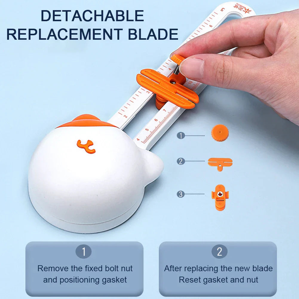 Kreativ skärning med kulfaktor – med Carvallo CircleCat, det roterande cirkelskärverktyget i söt kattdesign. Perfekt för scrapbooking, fotobearbetning, hantverk eller skolprojekt. Tack vare det ergonomiska handtaget och den exakta skalan klipper du enkelt perfekta cirklar – helt utan mätning eller omritning.