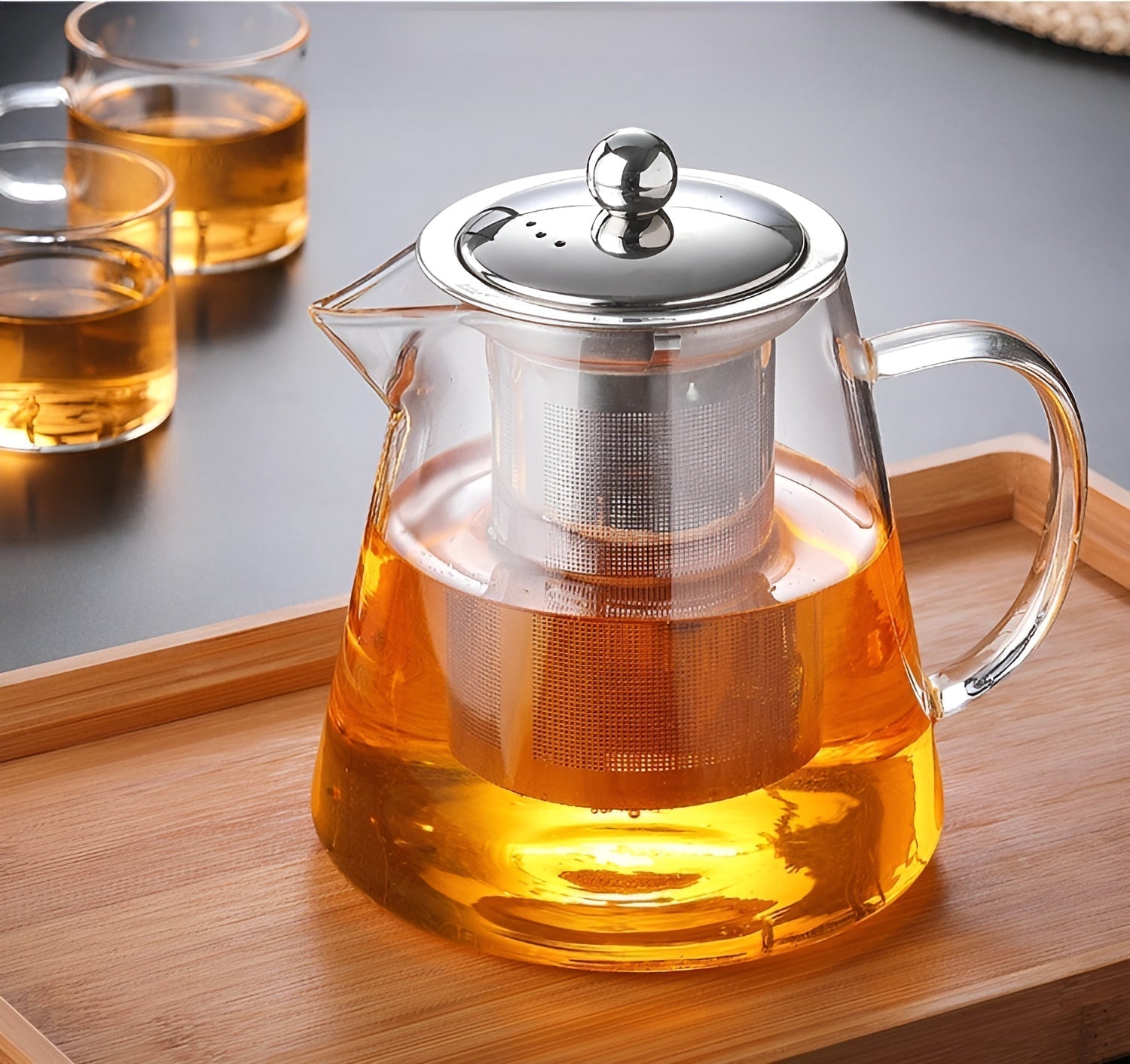Upplev den perfekta harmonin av estetik, funktion och njutning – med Carvallo Claritéa blir varje tepaus ett stilfullt ritual. Tillverkad av munblåst borosilikatglas, avslöjar den den fulla färgintensiteten av ditt favorittee, medan det avtagbara rostfria stålfiltret säkerställer en klar, resterfri infusion. Oavsett om det är grönt te på morgonen, fruktig infusion på eftermiddagen eller lugnande örtte på kvällen – Claritéa följer med dig njutningsfullt genom dagen.