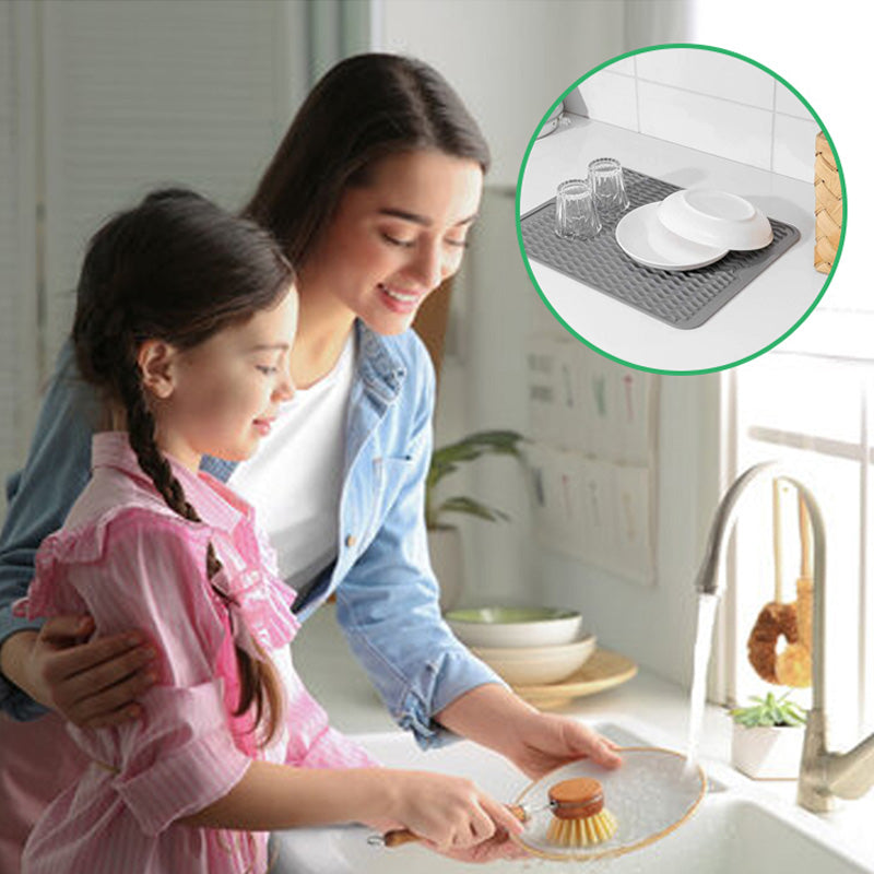 Med Carvallo får du den perfekta lösningen för ordning, skydd och renlighet i ditt kök! Denna mångsidiga silikonmatta ger en halkfri yta, snabb torkning och värmesäkerhet – allt i ett. Oavsett om den används som torkmatta, underlag eller ljuddämpare – Carvallo är den tysta hjälten i din köksrutin.