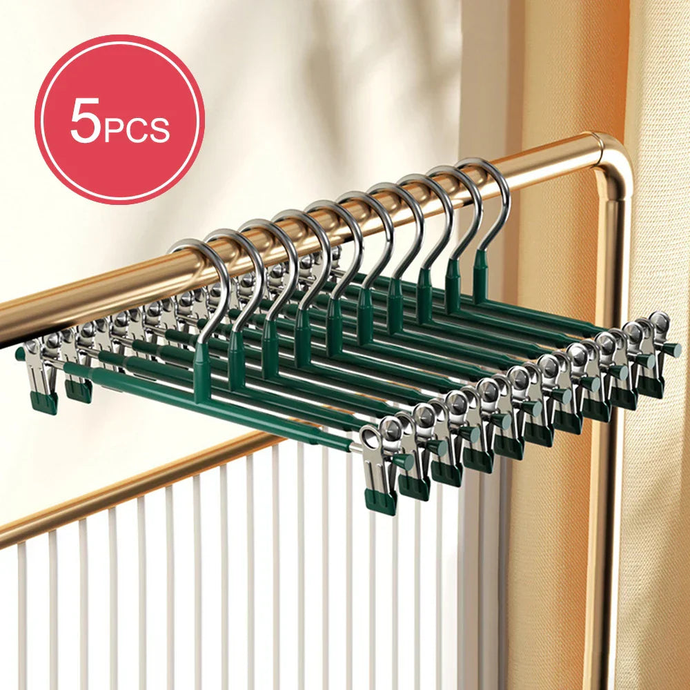 Carvallo rostfria stångklädhängare med klämmor | Justerbar & halkfri | För kjolar, byxor & underkläder | Platsbesparande & sömlös