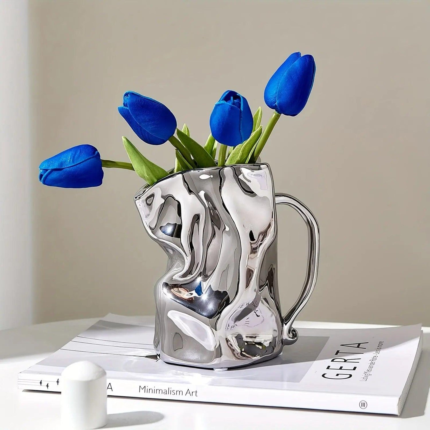 Dess blanka yta fångar ljuset och tillför djup, vilket gör den lika slående ensam som tillsammans med blomsterarrangemang. Utformad för mångsidighet anpassar sig denna vas till varje säsong eller tillfälle och erbjuder ett sofistikerat sätt att visa din personliga stil på.
