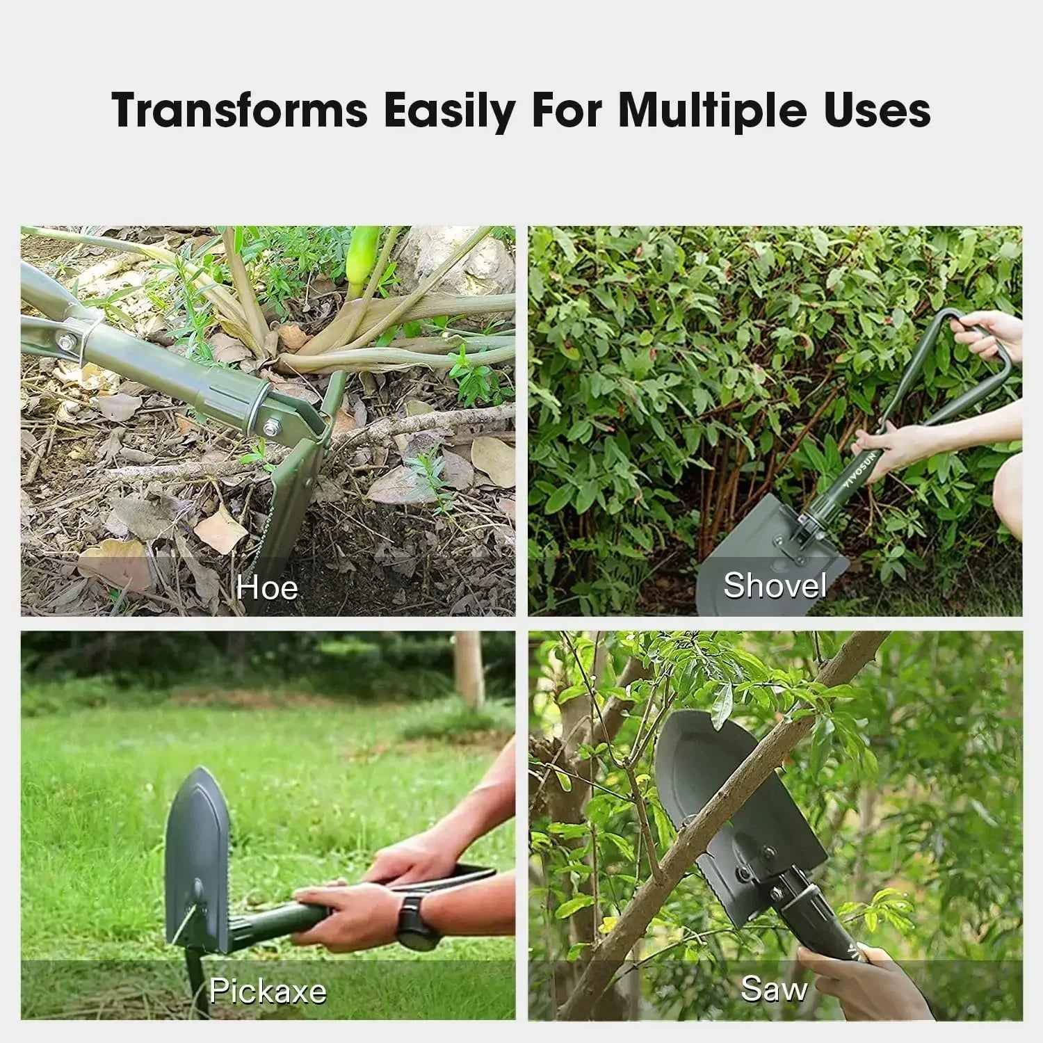 📌 4-i-1-funktion – Använd den som spade, hacka, såg eller spik – även användbar i 90° vinkel för trånga områden.