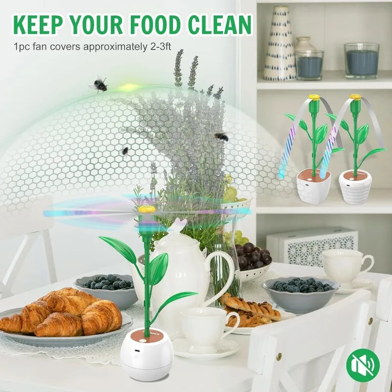 📌 Flugfria måltider – De roterande vingarna med holografisk mönster avskräcker flugor effektivt genom ljusreflektion. De håller sig borta från din måltid utan att du behöver vifta konstant.