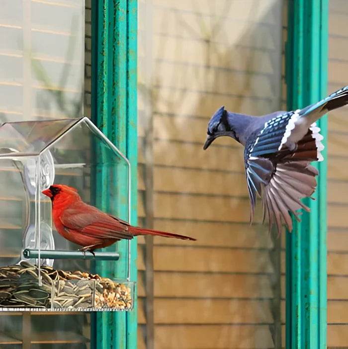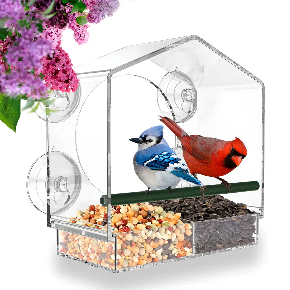 Carvallo – Transparent fönsterfågelmatare med bricka och sugförmåga