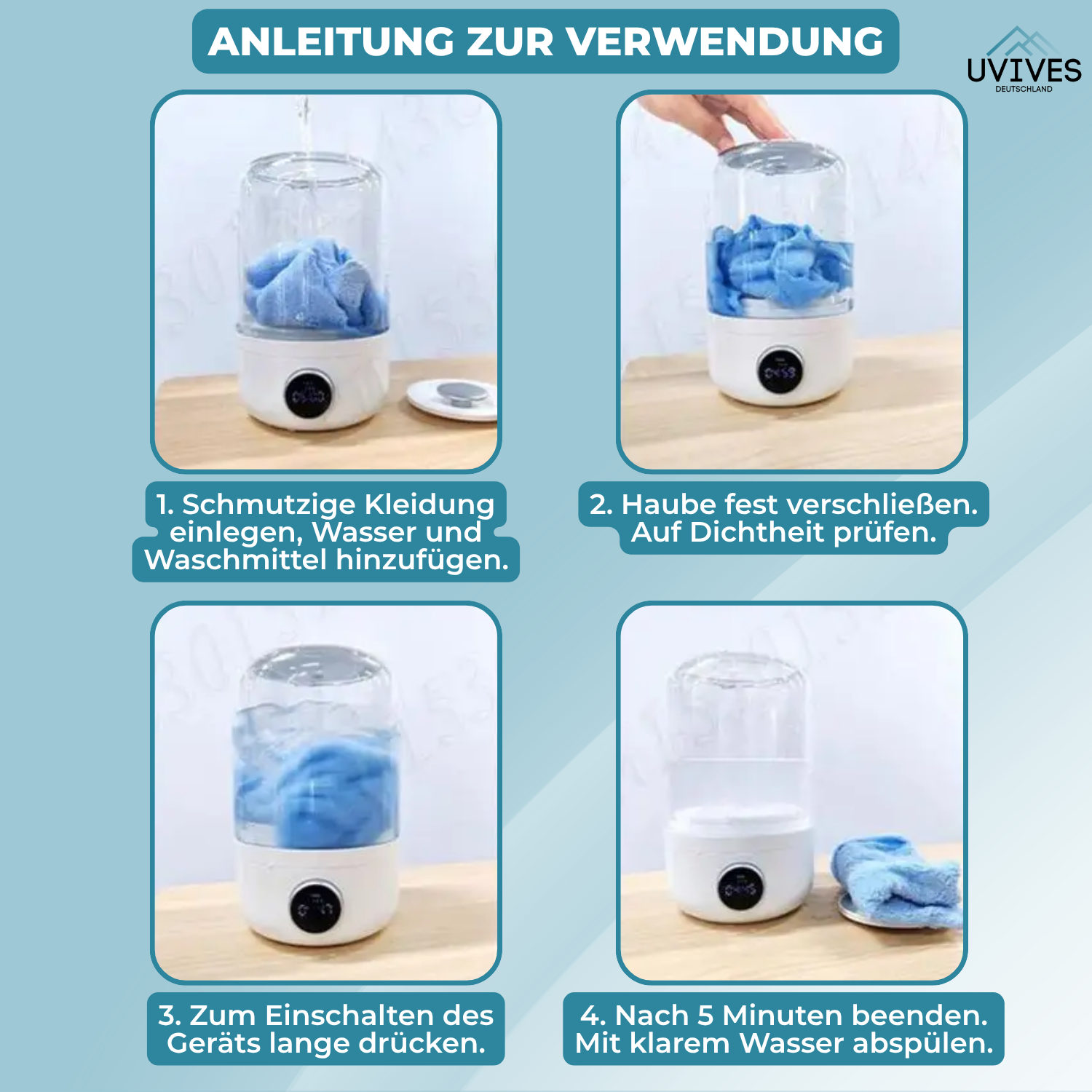 Med Carvallo Go kan du få din underkläder eller strumpor rena på bara några minuter – helt utan att bära, sladdar eller gemensamma tvättstugor. Den bärbara mini-tvättmaskinen är perfekt för hemmet, resor, camping eller små lägenheter.