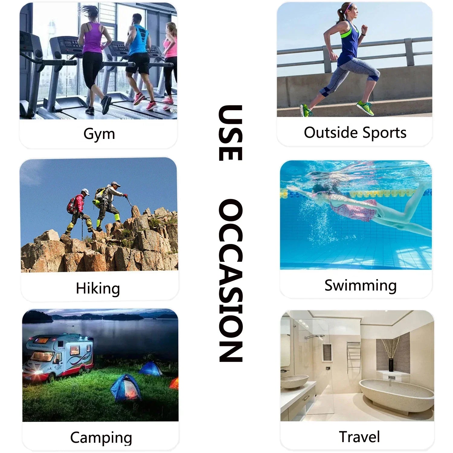Användningsområden: Fitness, simning, yoga, resor, vandring, strand