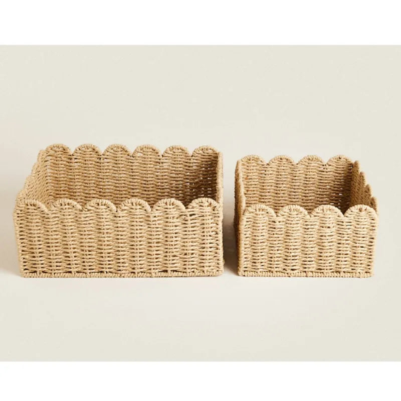 Carvallo – Handvävd Korg för Förvaring med Vågig Kant i Tre Storlekar