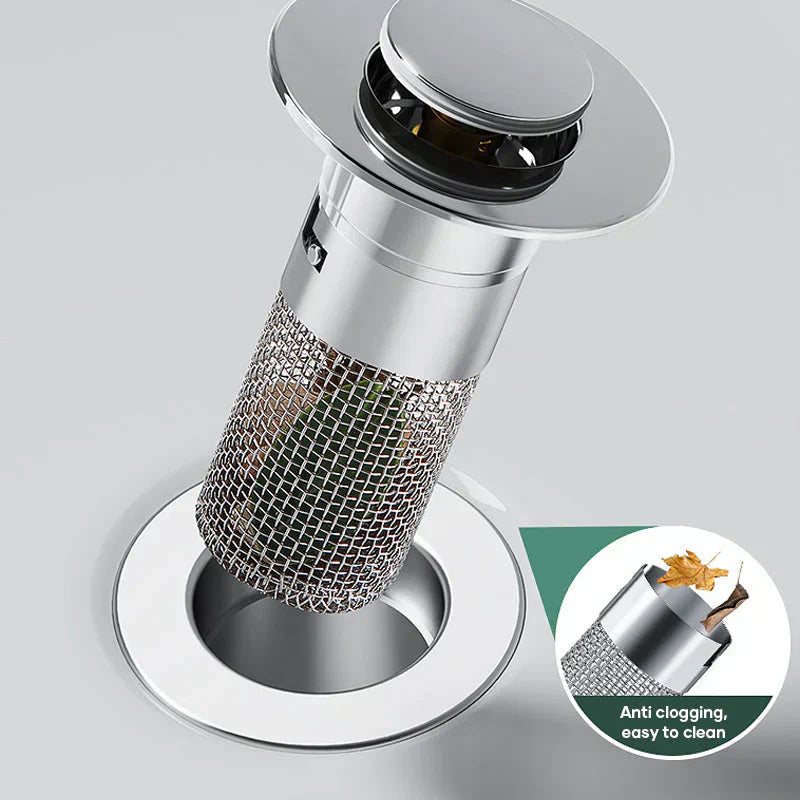 Vi presenterar vår rostfria golvavloppsfilter och handfatstopp. Utformad för att hålla dina avlopp fria från blockeringar och lukter, fungerar denna pop-up handfatstopp också som ett hårfilter och duschavloppssil. Med denna effektiva och hållbara lösning för ditt badrum säger du blockeringar och obehagliga lukter adjö.