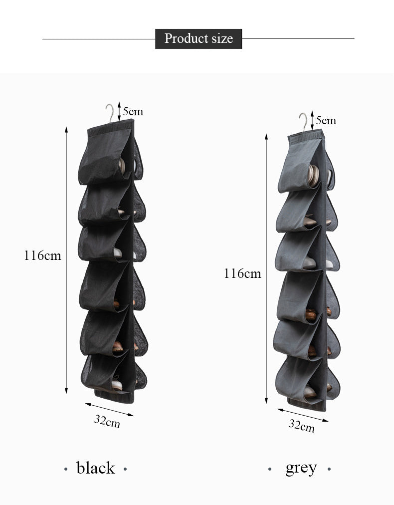 Beroende på storlek får upp till 12 par skor plats i facken.