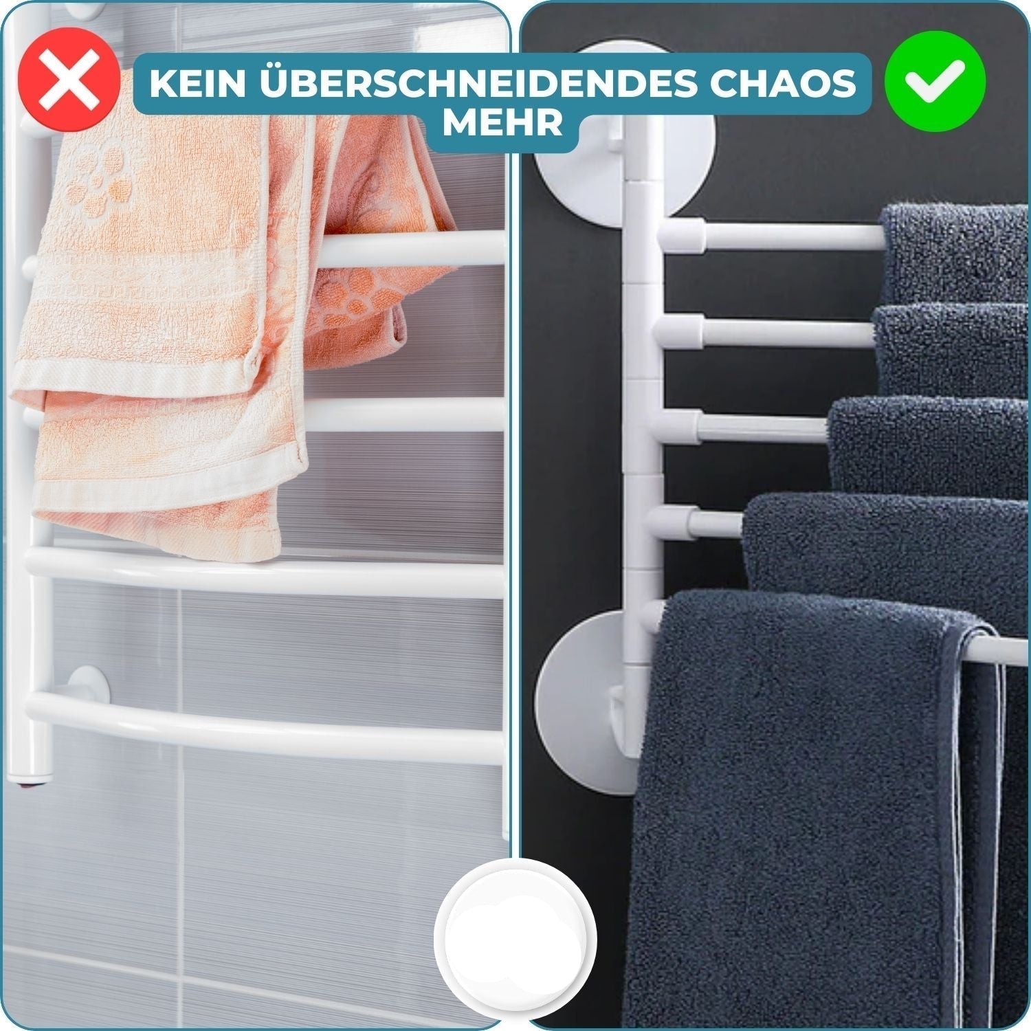 ✓ Platsbesparande & flexibel – Den 180° roterande stangen möjliggör optimal luftcirkulation, så att handdukar torkar snabbare och förblir fräscha.