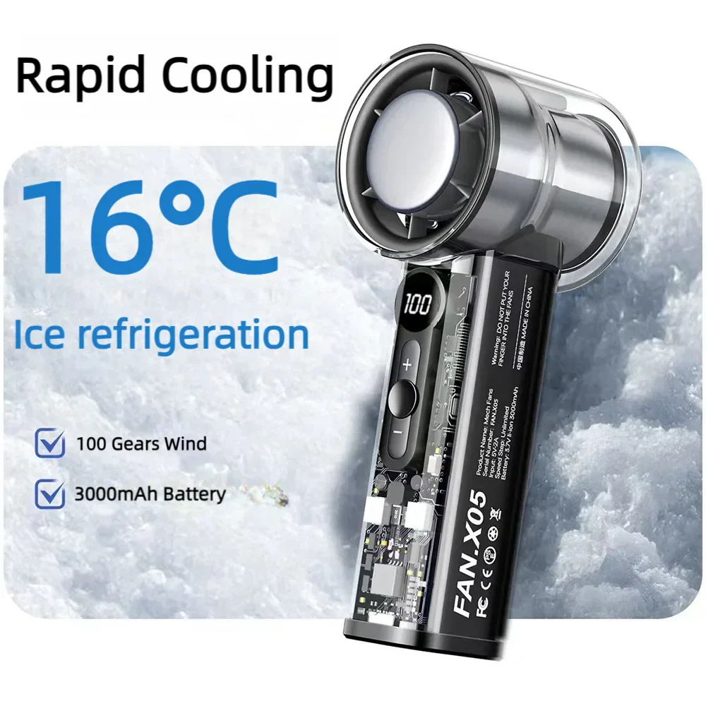 Carvallo IceFlow Mini Handfläkt med halvledarkylteknik | 3000 mAh batteri | Bärbar & Uppladdningsbar | Ultra-tyst & Kraftfull