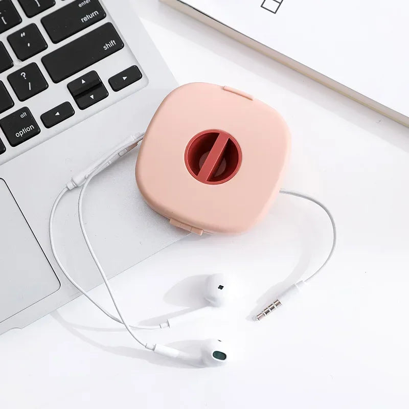 Carvallo Kabelaufwickler mit Drehmechanismus | Tragbare Kabelbox & Handyhalter | Für Kopfhörer, Maus- & Ladekabel