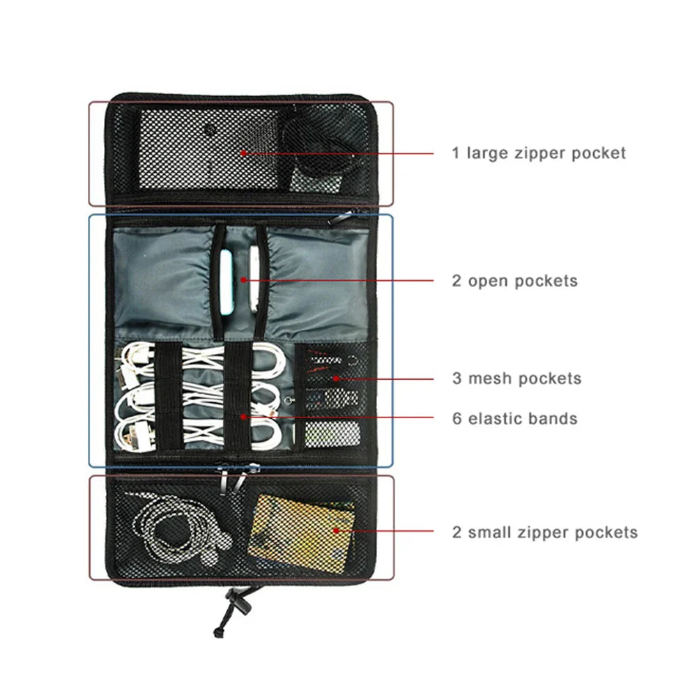 📌 Multifunktionell förvaring – Utrymme för kablar, laddare, powerbanks, SD-kort, AirPods, USB-minnen & mer.