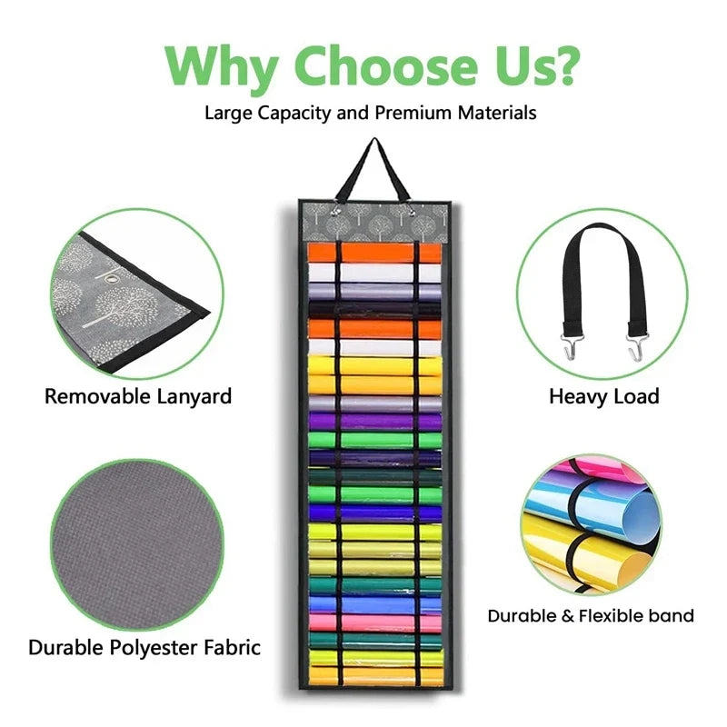 Carvallo Keeper Vinyl-rullehållare med 48 fack | Hängande organizer för pysselrum & verkstad | Platsbesparande förvaring | 33 × 113 cm