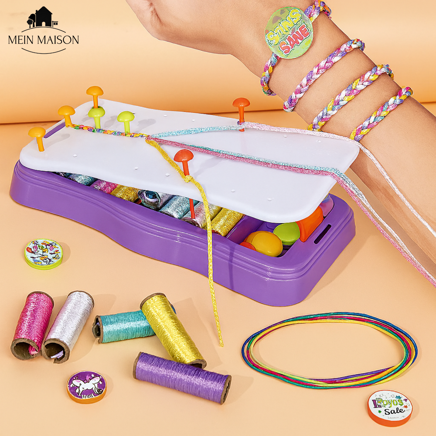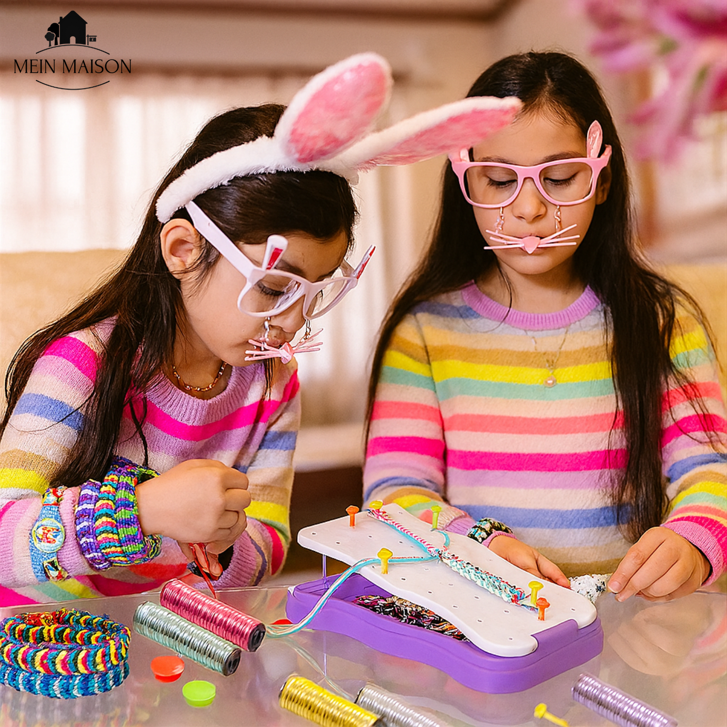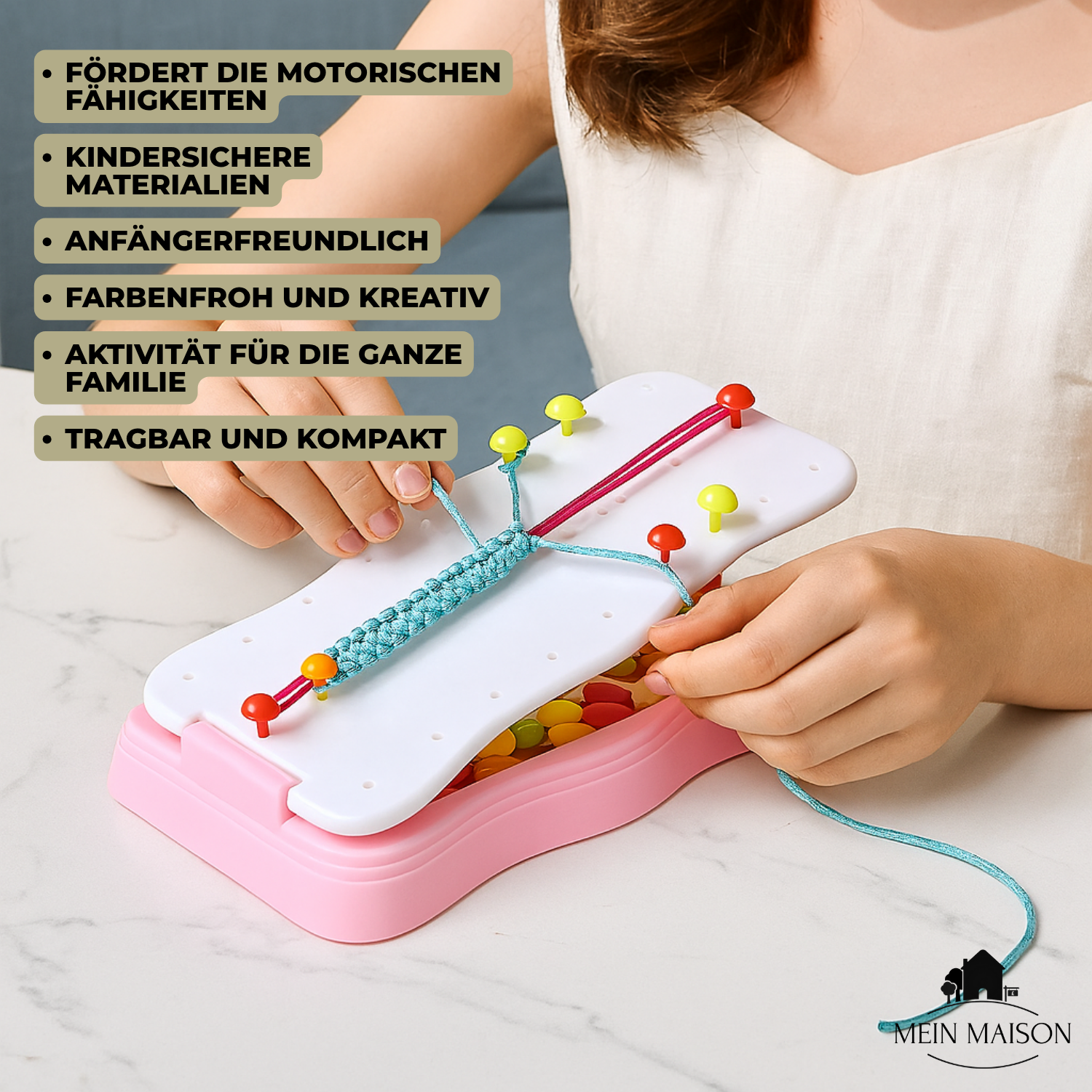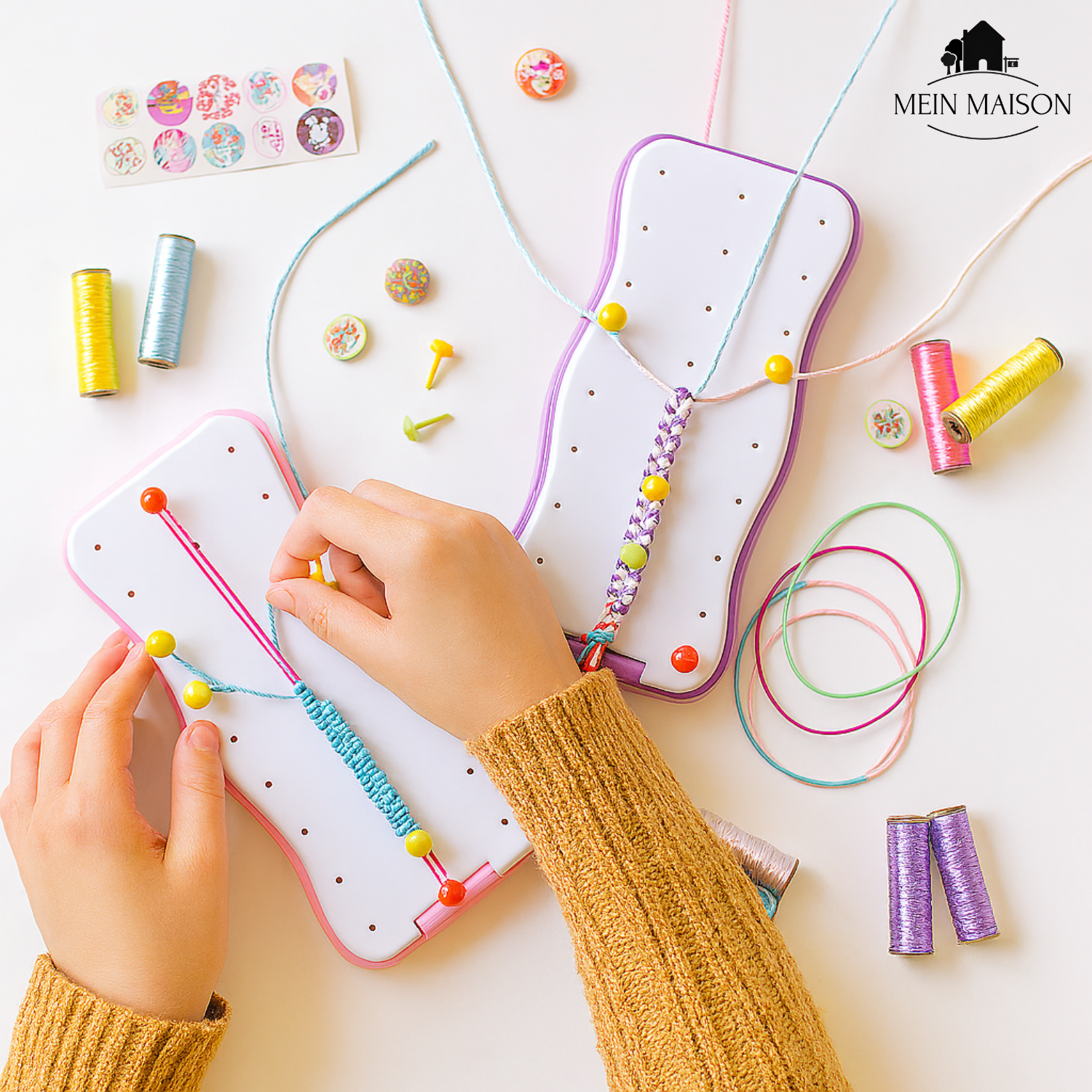 Med detta DIY flätset kan barn skapa egna armband, nyckelringar eller vänskapsgåvor – färgglatt, kreativt och väldigt enkelt! Under tiden tränar de sin fingerfärdighet och spenderar värdefull pysseltid med familjen.