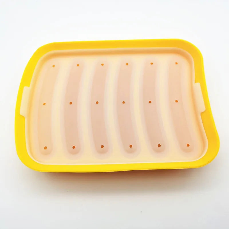 Med Carvallo Silikonkorvform skapar du enkelt hemgjorda korvar, varmkorvar eller till och med kreativa bakverk – utan tarmar, utan ansträngning, utan kladd. Detta smarta köksredskap är tillverkat av högkvalitativt, livsmedelsäkert silikon och rymmer upp till 6 korvar åt gången. Oavsett om de är söta eller salta – din kreativitet har inga gränser!