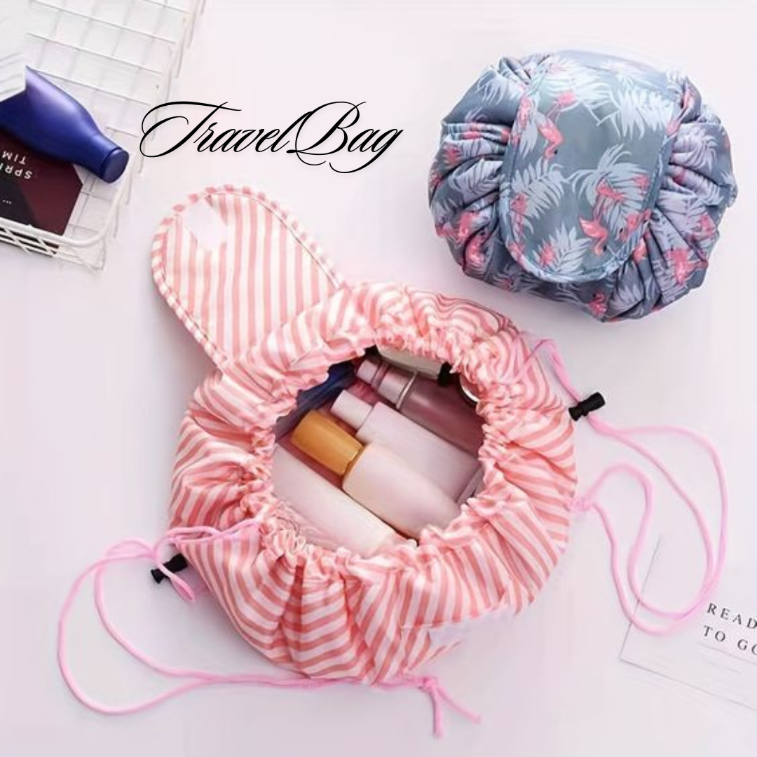 PACKA OMGÅENDE - Att packa alla dina produkter är inte längre en tråkig plikt. Lägg helt enkelt allt i den öppna sminkpåsen och dra i snörena för att stänga den. Det är verkligen så enkelt.