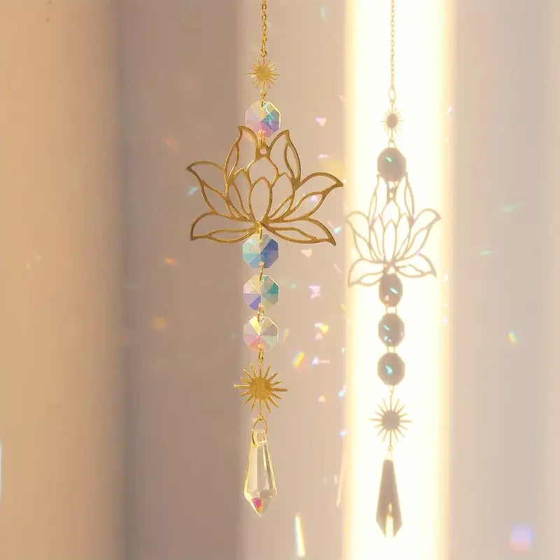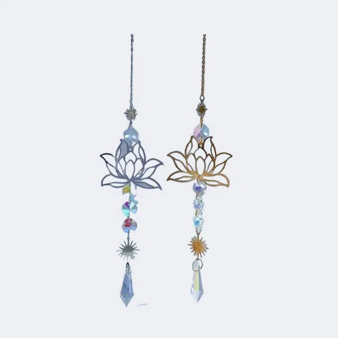 Carvallo Kristallvindspel | Handgjord Lotus solfångare | Glas & Metall | För Trädgård, Fönster & Balkong