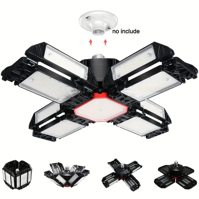 Carvallo LED Garage Lamp | Foldable Ceiling Light with 3–12 Adjustable Panels | E27 Socket | 6500K Daylight – For Workshop, Warehouse & Garage
