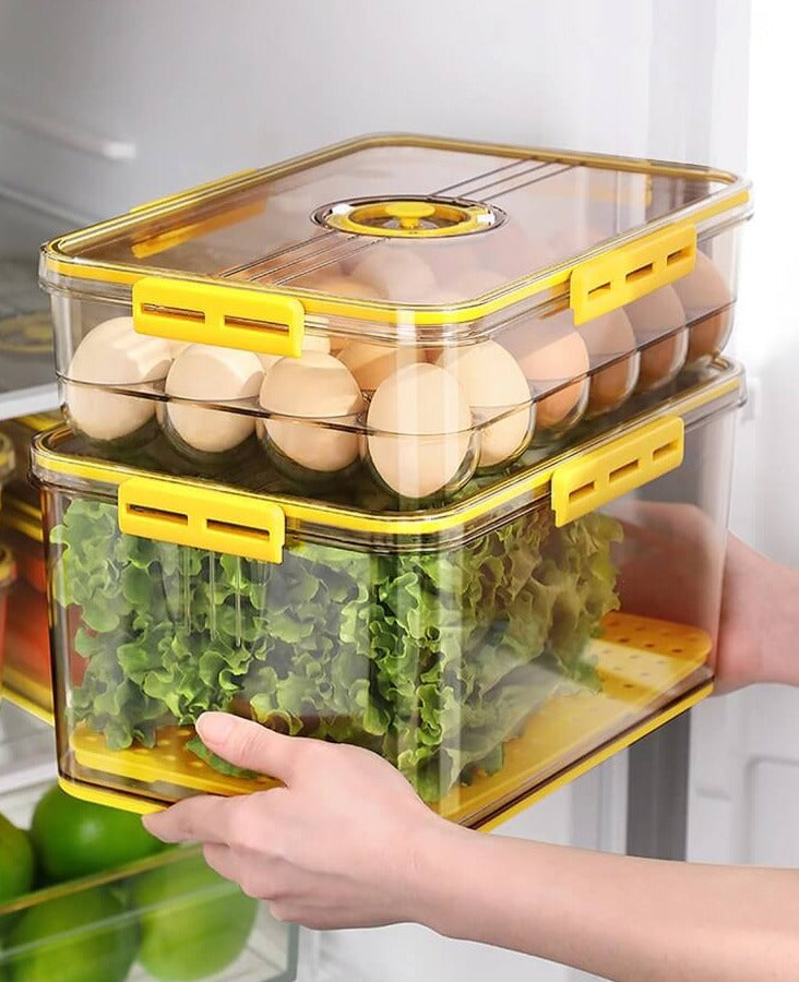 Denne smarta matorganisatör håller dina ingredienser färska och sparar plats – perfekt för kylskåp, skafferi och fryslådor.