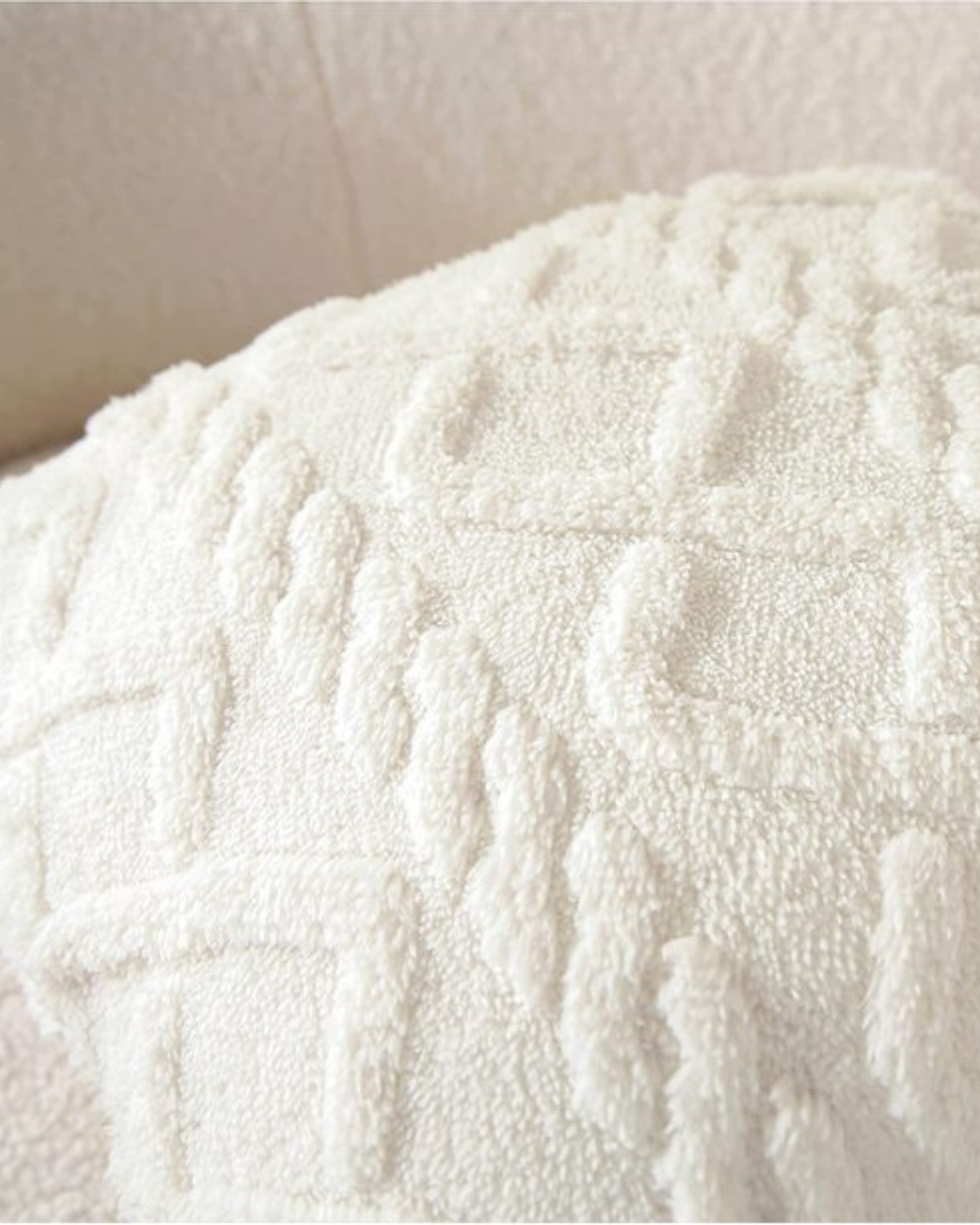 Den raffinerade geometriska texturen skapar ett rikt, lagerpålagt utseende som perfekt överensstämmer med Japandi-stilen och moderna boendekoncept. Den taktila upplevelsen inbjuder till avkoppling och förvandlar varje sittande ögonblick till ren njutning.