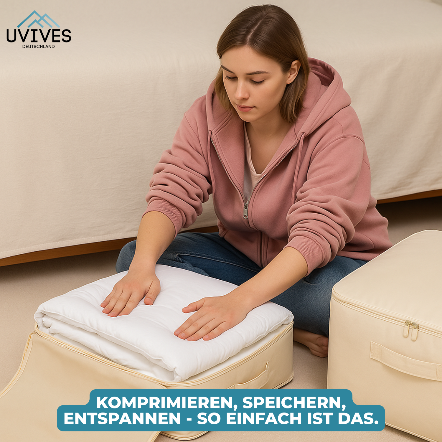 ✔️ Skyddar dina kläder pålitligt: Vattenavvisande, robust material håller fukt, smuts och lukt borta – perfekt för filtar, säsongsplagg eller barnkläder.