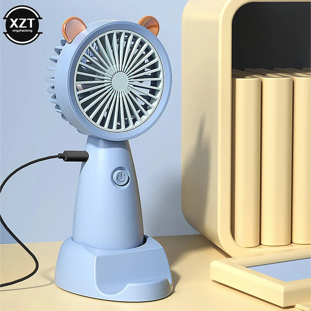 ✨ 3-i-1-funktion: Bärbar handfläkt, halsfläkt & mini-skrivbordsfläkt med smartphone-hållare i ett.