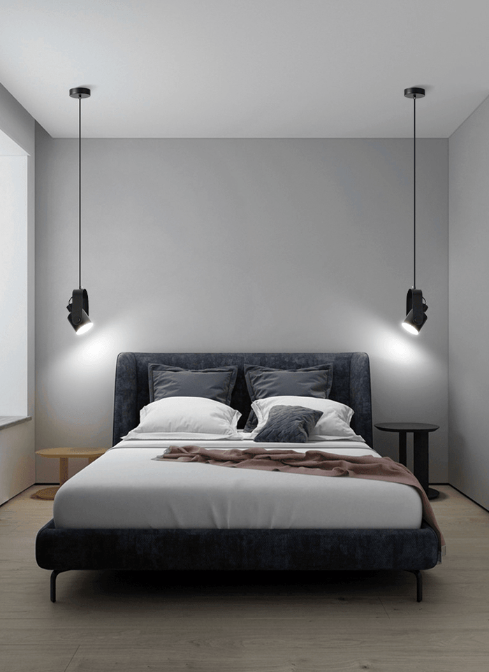 Minimalistisk stil upphängd i en smal ledning för en modern känsla