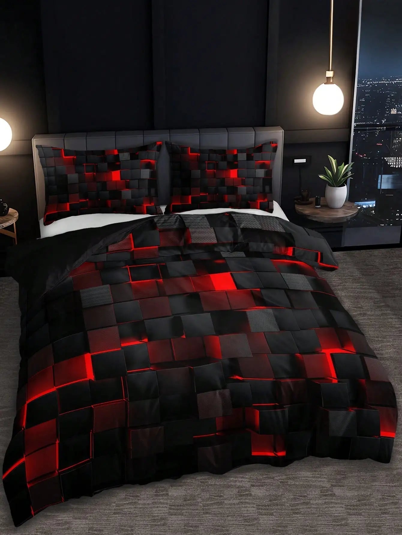 Förvandla ditt rum med Carvallo, ett modernt sängset som kombinerar sofistikering och modern design. Med ett slående rött rutmönster inspirerat av teknologi, kommer detta duvetöverdrag och matchande kuddfodral att ge ditt sovrum eller studentrum en slimmad, stilren look. Den är perfekt för alla som vill lägga till en touch av modern flair, samtidigt som de njuter av den ultimata komforten.