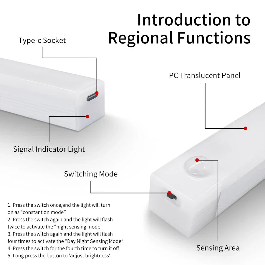🎛️ 3-funktionell strömbrytare: Välj mellan konstant ljus, rörelsesensor-läge eller helt av – enkelt att styra med en knapptryckning.