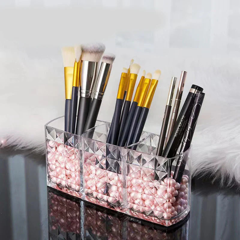 ✨ 3 rymliga fack – Perfekta för penslar, läppstift, mascaror eller parfymprover – allt välinordnat.