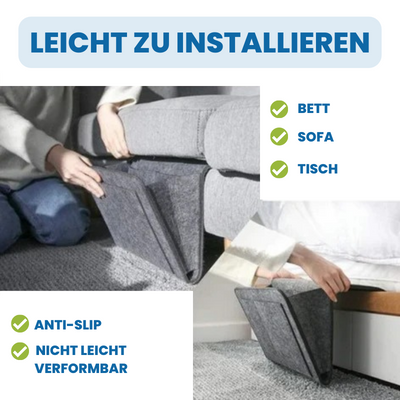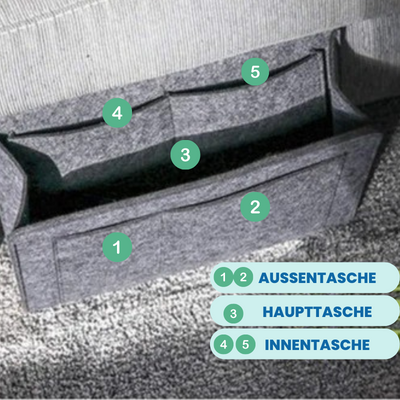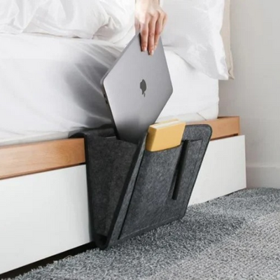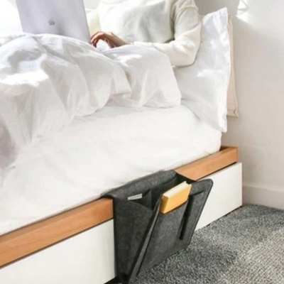 Nattduksorganisatören är en förvaringsväska för soffa, säng och skrivbord. Du kan fästa organisatören vid säng och soffa samt skrivbord och andra platser med madrasser, mattor, böcker eller tunga föremål.