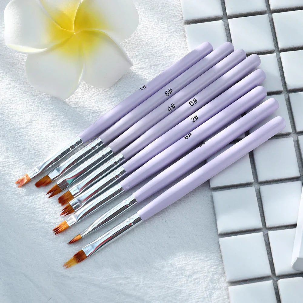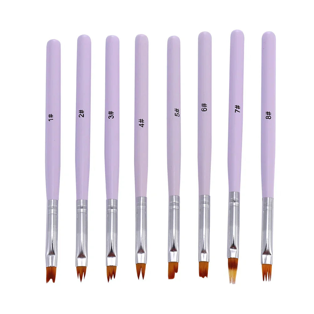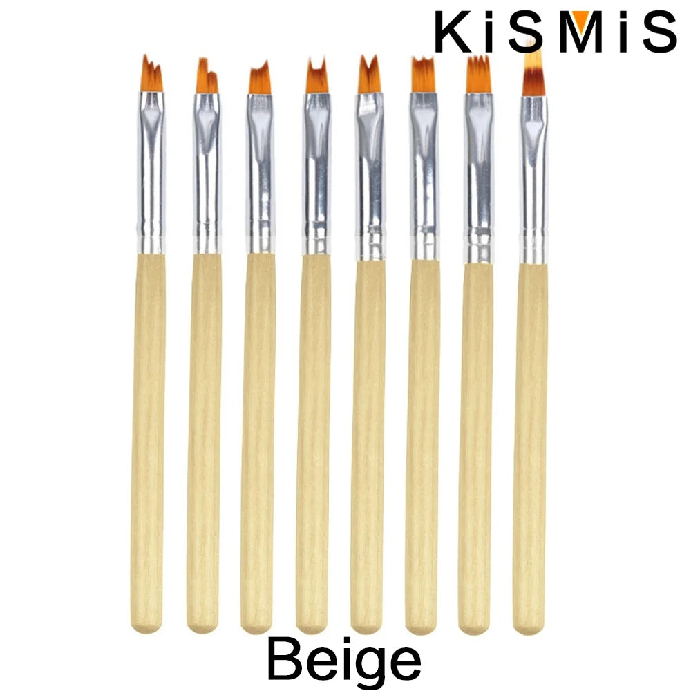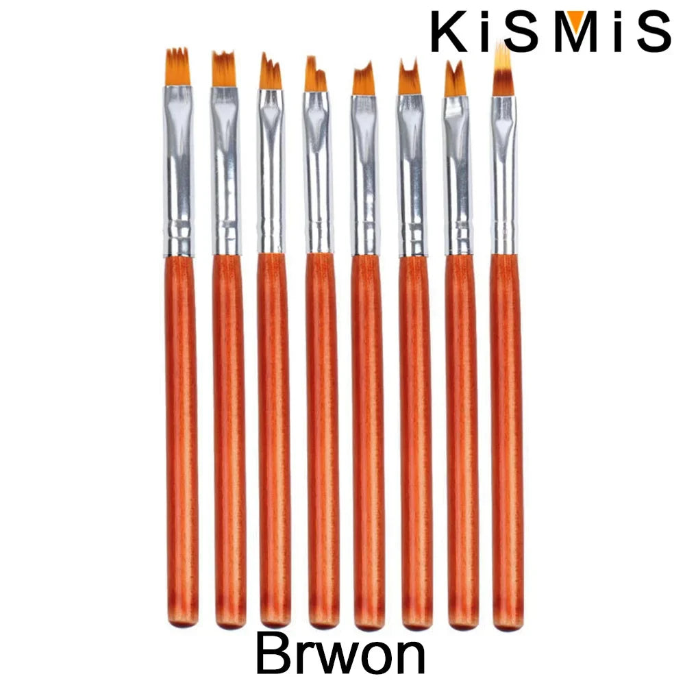 Carvallo-penselsæt NailMuse 8-pak | Fine detaljpenner til gel og neglekunst | Træhåndtag | Fås i 5 farver