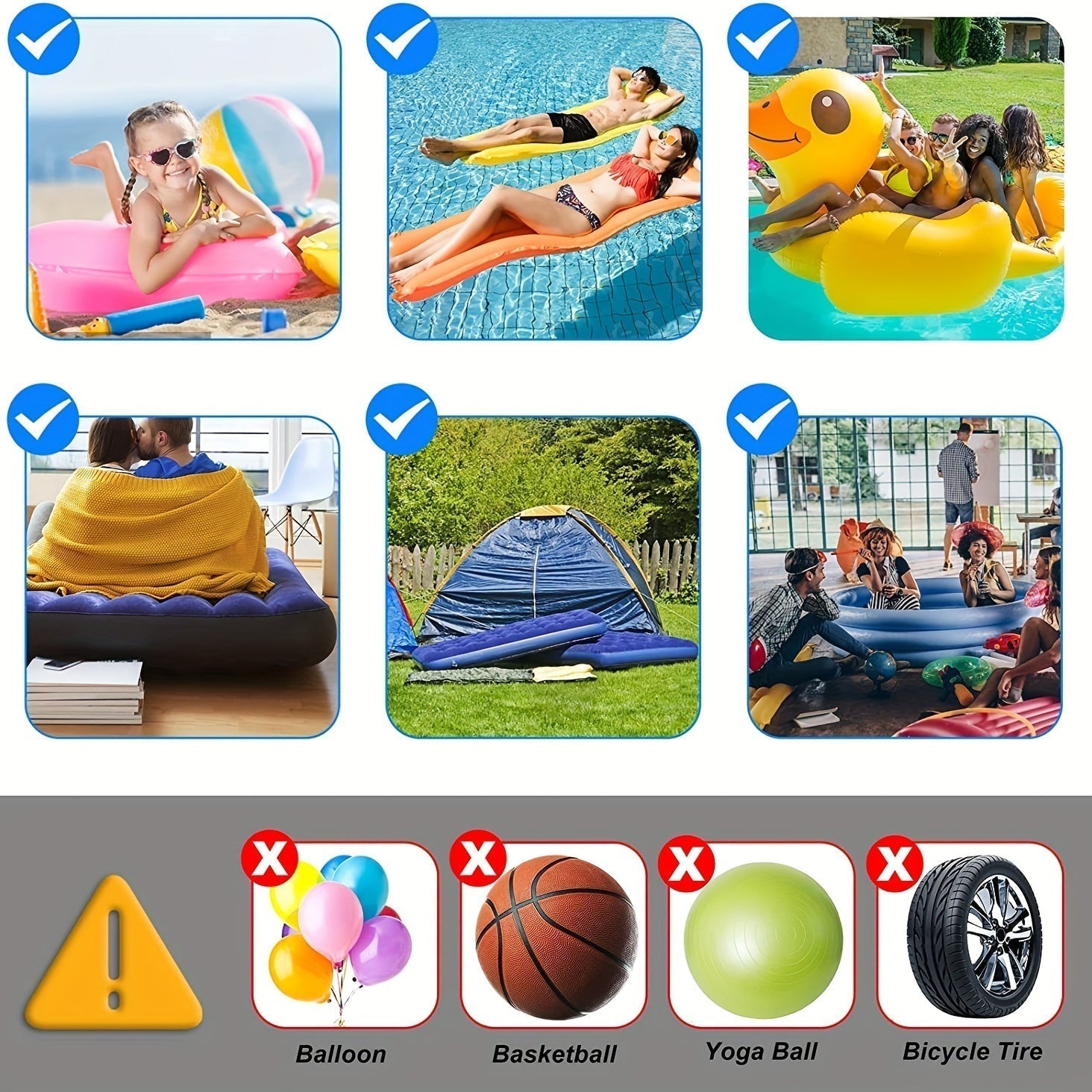 ✔️ Allsidig: Lämplig för luftmadrasser, uppblåsbara leksaker, kuddar m.m.