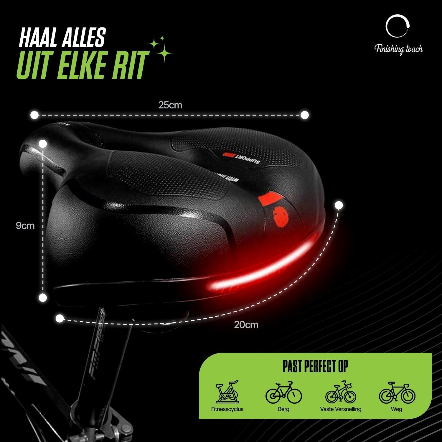En bekväm åtur: Den mjuka stoppningen och det ventilerande lädermaterialet ger en bekväm åktur utan smärta. Sadeldesignen anpassar sig perfekt efter din bak och förhindrar obehag medan du cyklar.