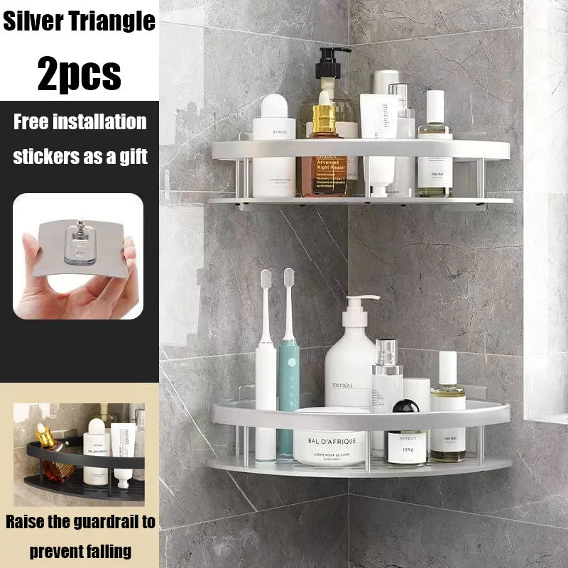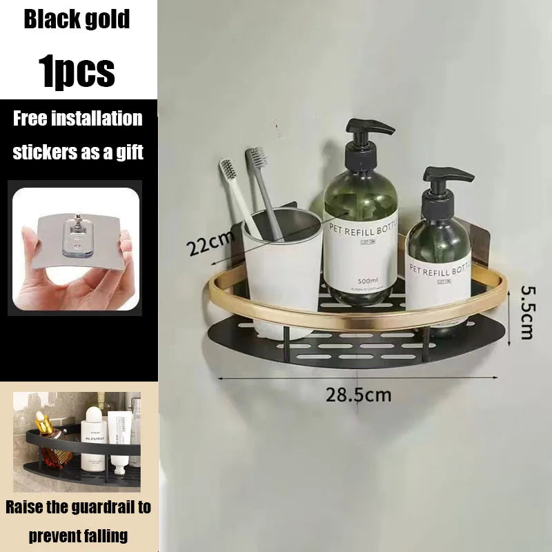 Carvallo Pro | Hörnduschhylla utan borrning | Aluminium | Rostfritt & Hållbart | Badrregal i Svart, Vitt, Silver eller Svart-Guld