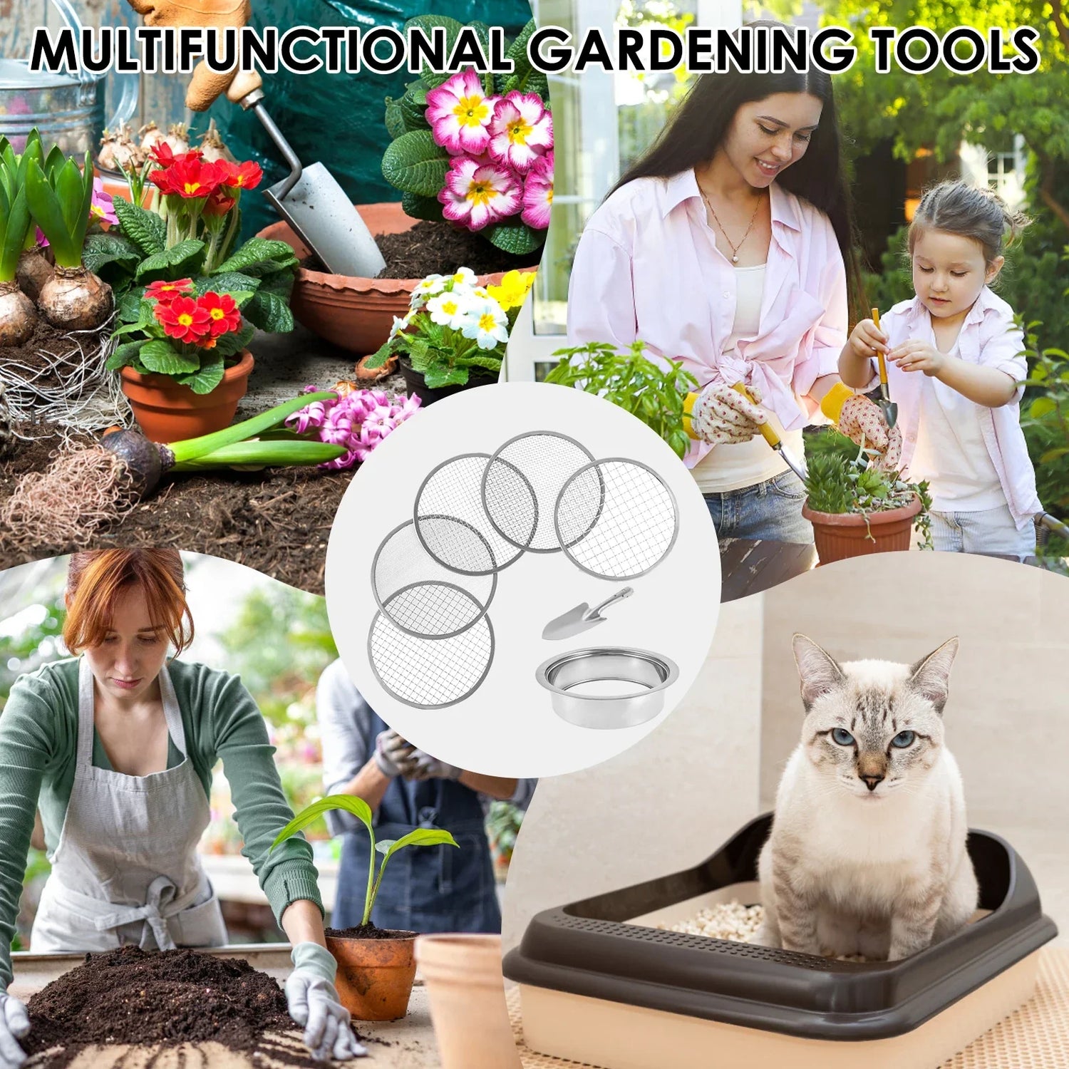 Carvallo Pro | Edelstahl Bodensieb-Set | 5 Wechselbare Siebe (1–12 mm) | Ø 24 cm | Für Erde, Sand & Kompost | Inkl. Schaufel